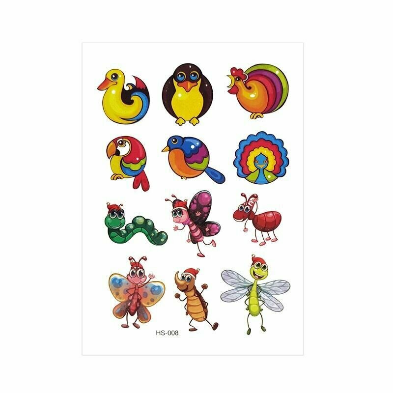 Купить Временные татуировки для детей водостойкие с блёстками "Птицы + Насекомые"