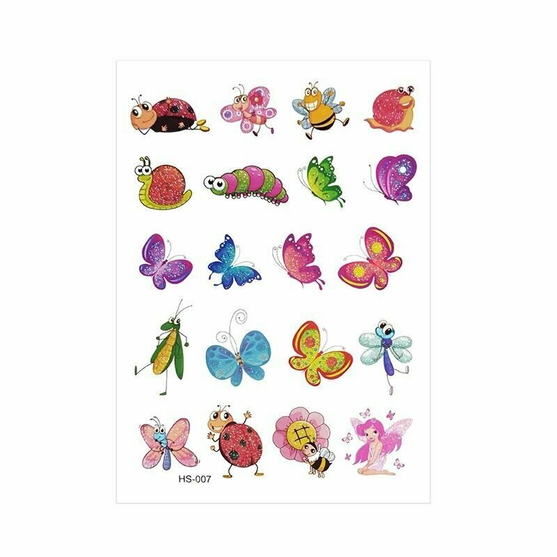 Временные татуировки для детей водостойкие с блёстками "Птицы + Насекомые"