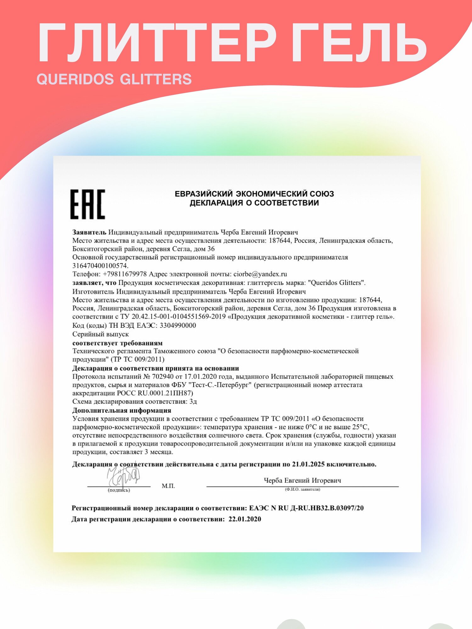 Queridos Glitters ГлиттерГель. Блёстки для лица и тела. Цвет "Спектр" 3 мл.