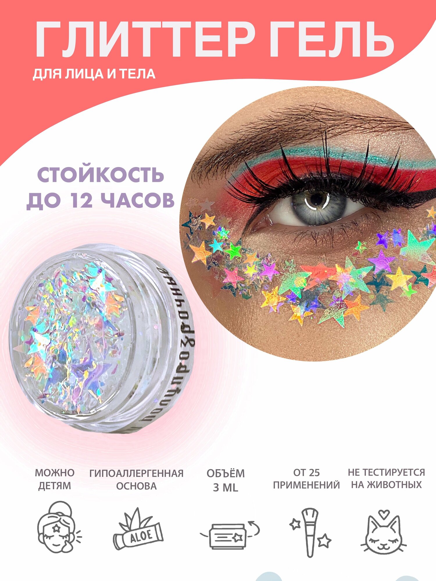 Queridos Glitters ГлиттерГель. Блёстки для лица и тела. Цвет "Звезды 2в1 Магия" 3 мл.
