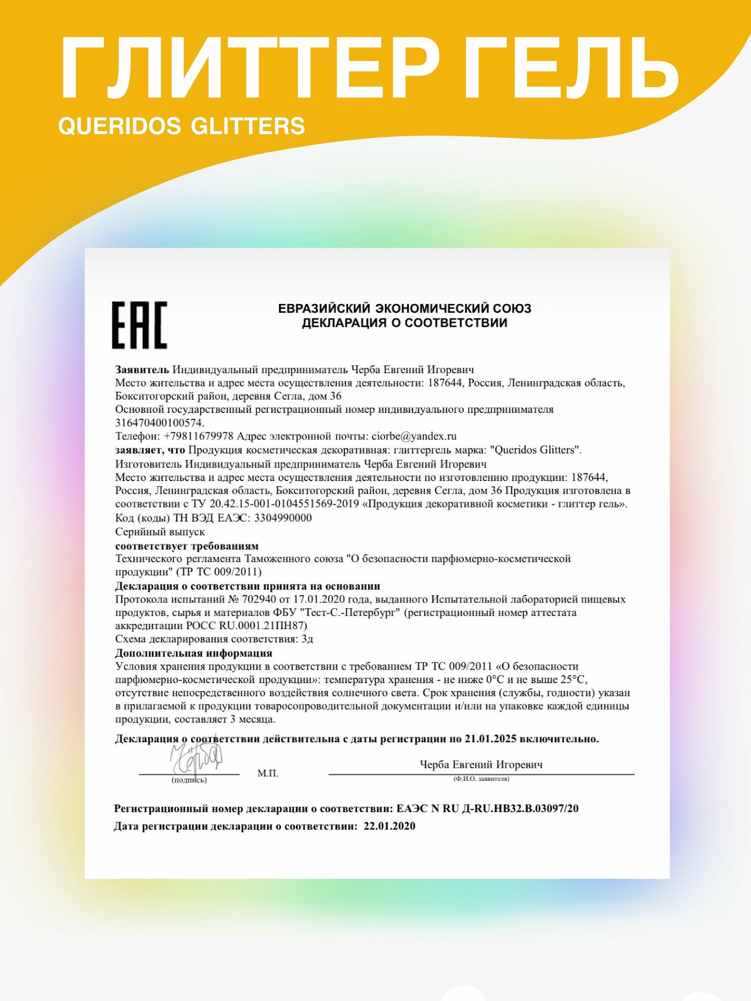 Queridos Glitters ГлиттерГель. Блёстки для лица и тела. Цвет "Глянец" 3 мл.