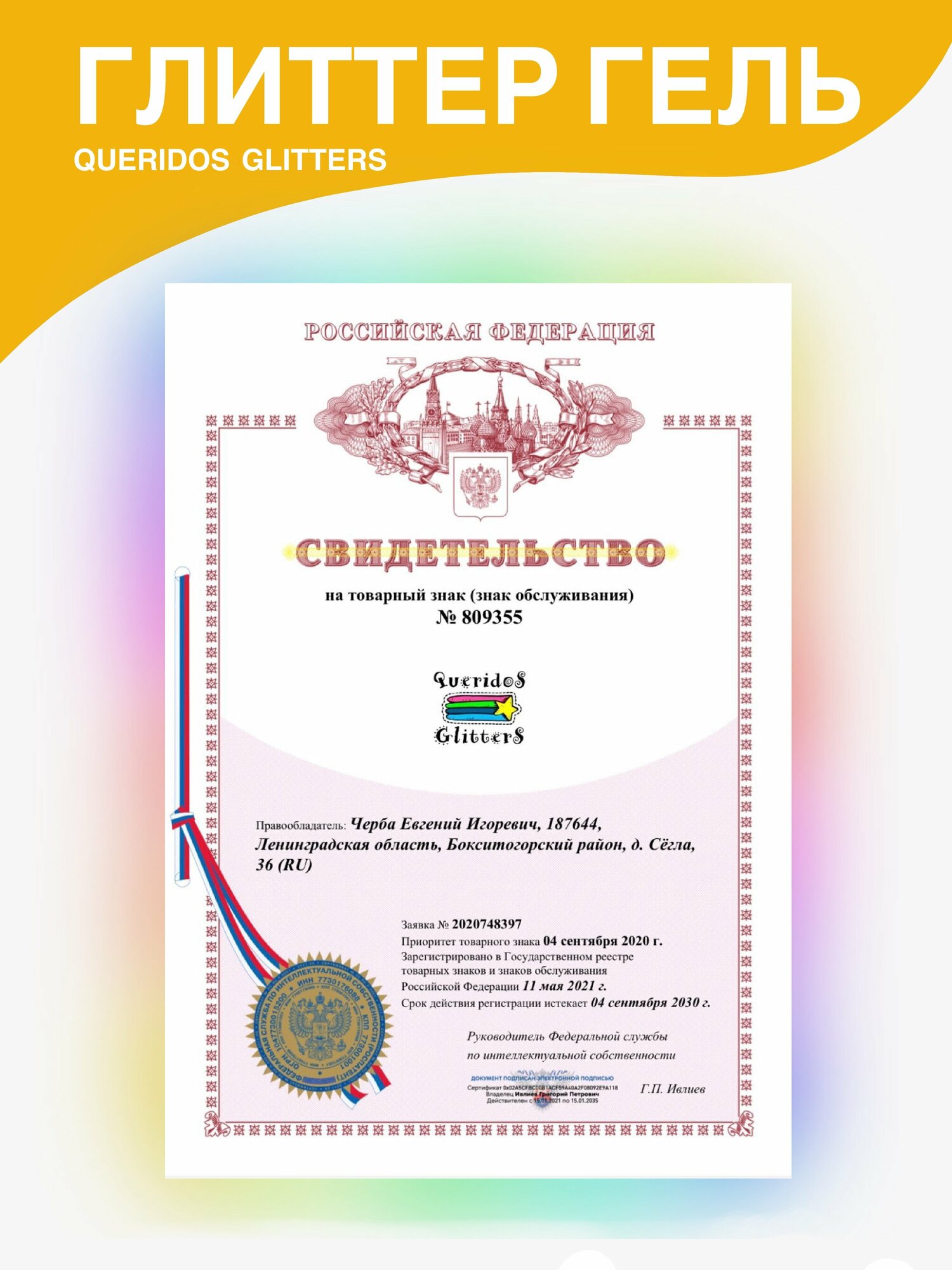 Queridos Glitters ГлиттерГель. Блёстки для лица и тела. Цвет "Великолепие" 3 мл.