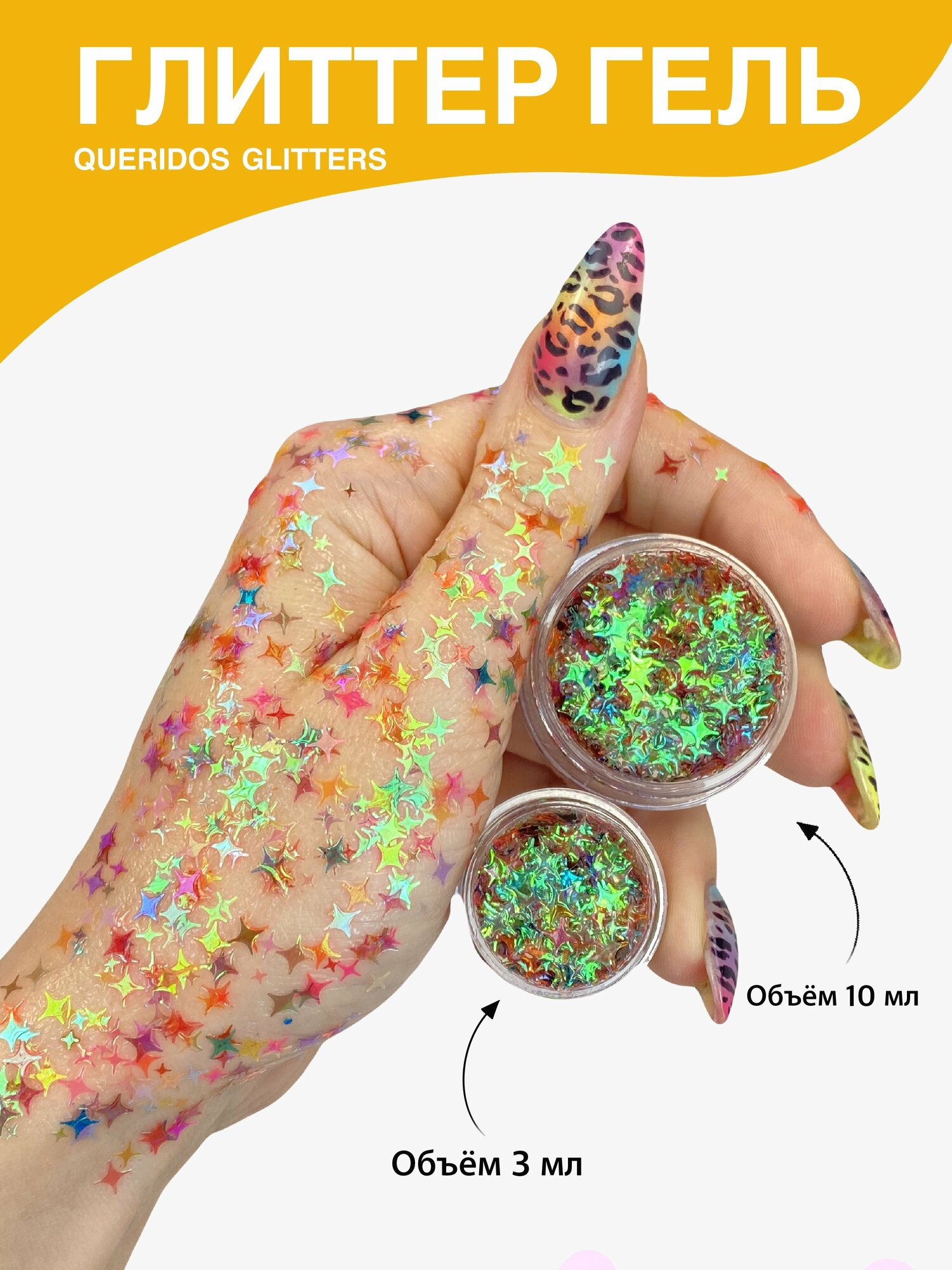Queridos Glitters ГлиттерГель. Блёстки для лица и тела. Цвет "Звезды Айсберг" 3 мл.