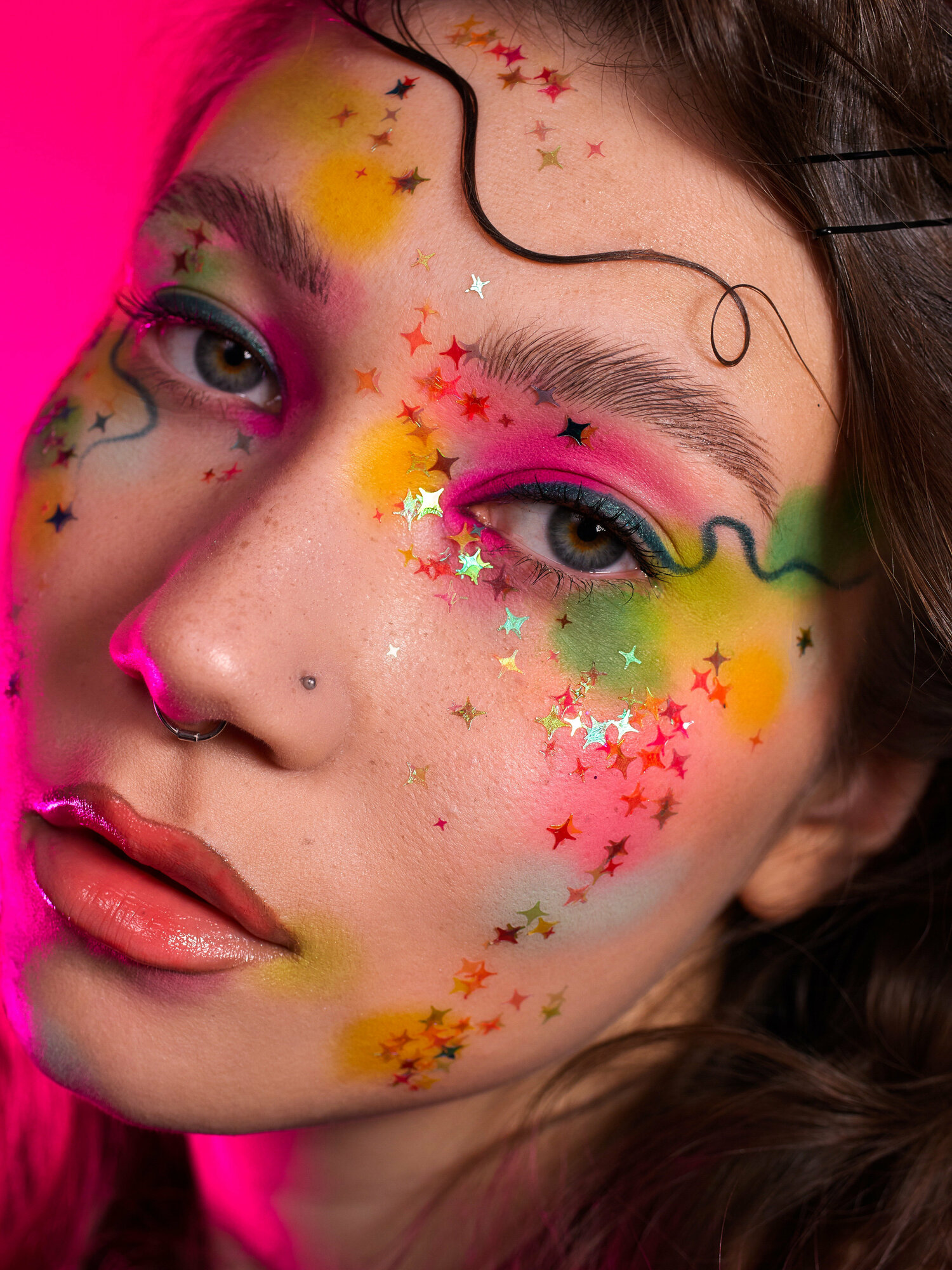 Queridos Glitters ГлиттерГель. Блёстки для лица и тела. Цвет "Звёзды Галактики Пинк" 3 мл.