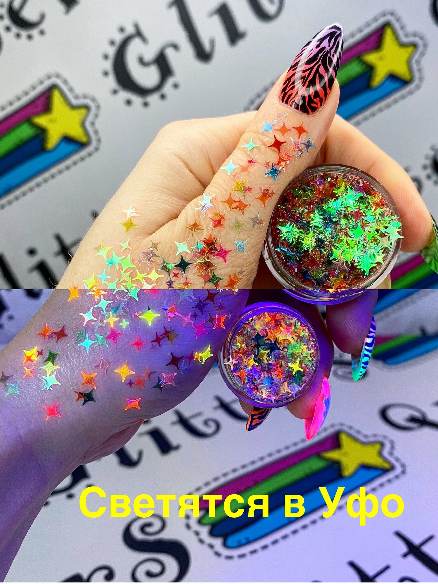 Queridos Glitters ГлиттерГель. Блёстки для лица и тела. Цвет "Звезды 2в1 Магия" 3 мл.