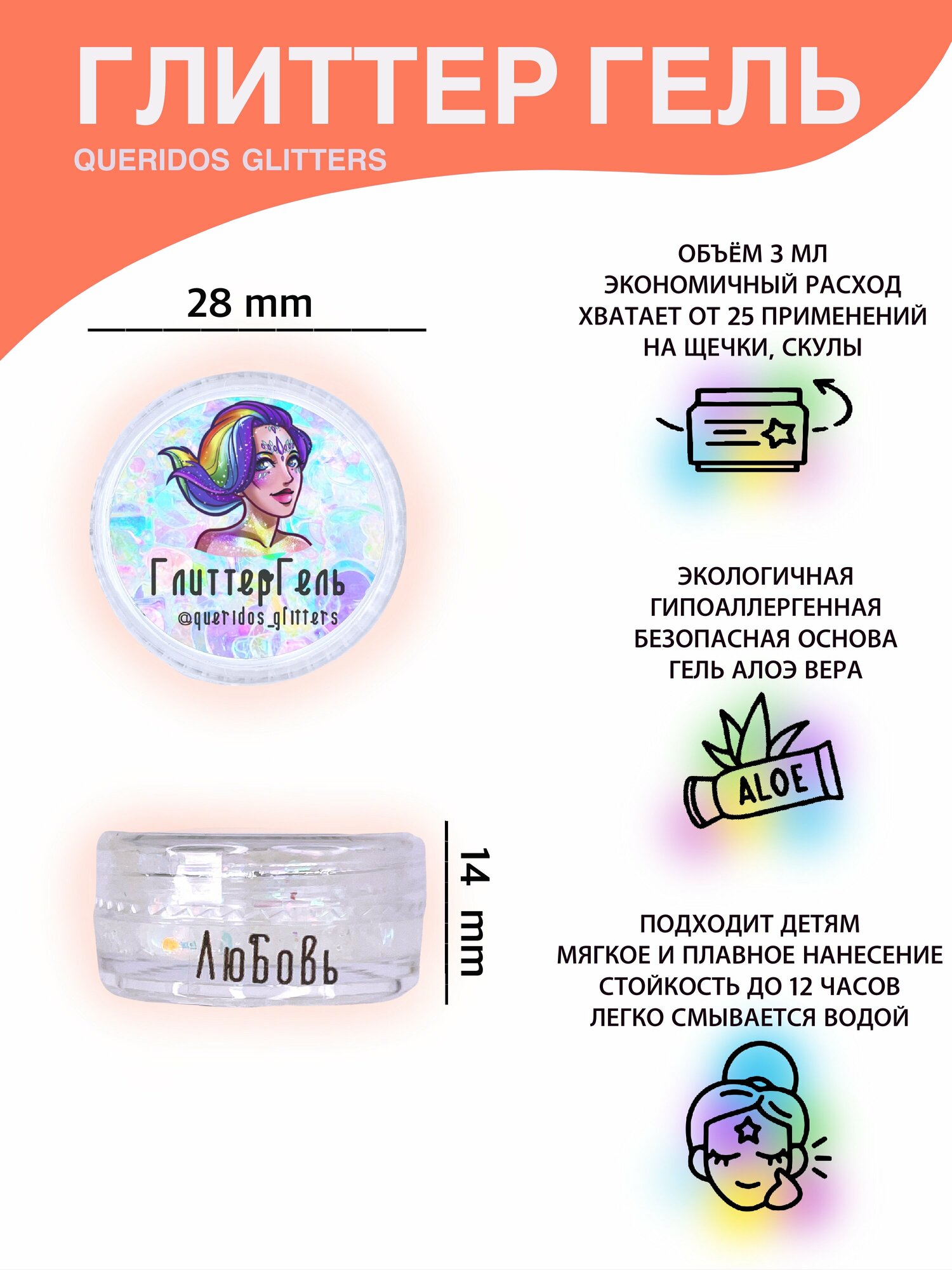 Купить Queridos Glitters ГлиттерГель. Блёстки для лица и тела. Цвет "Любовь" 3 мл.