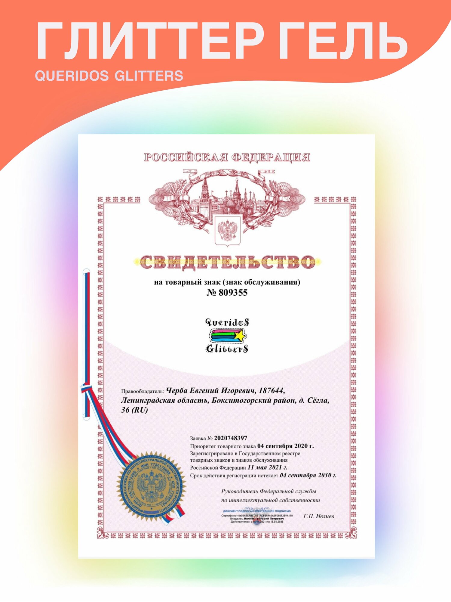 Queridos Glitters ГлиттерГель. Блёстки для лица и тела. Цвет "Мир" 3 мл.