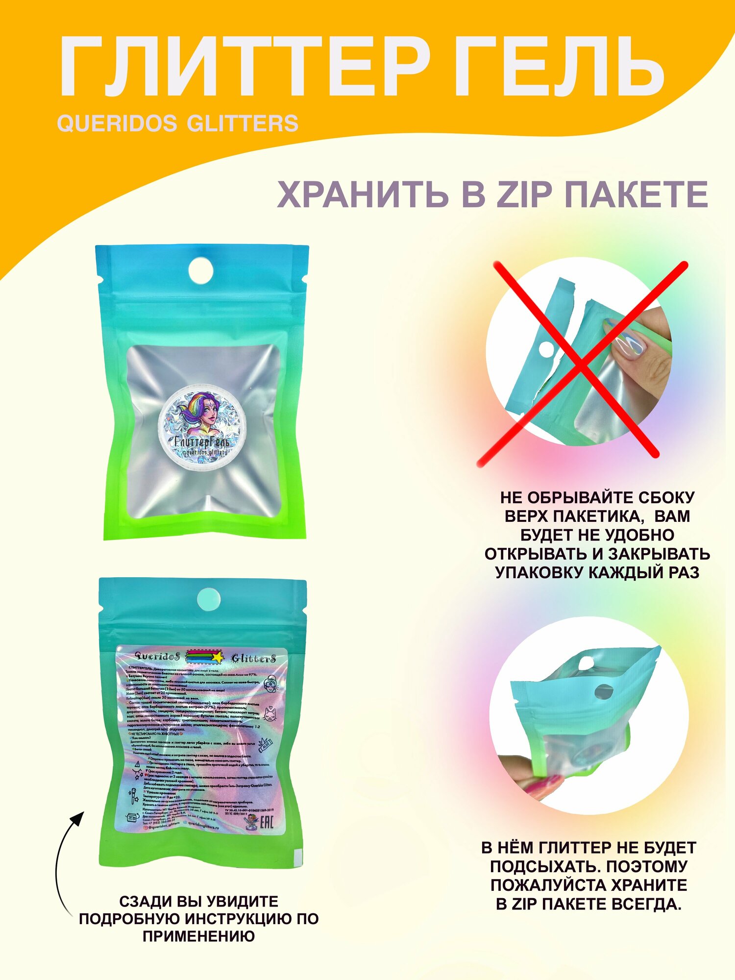 Queridos Glitters ГлиттерГель. Блёстки для лица и тела. Цвет "Глянец" 3 мл.