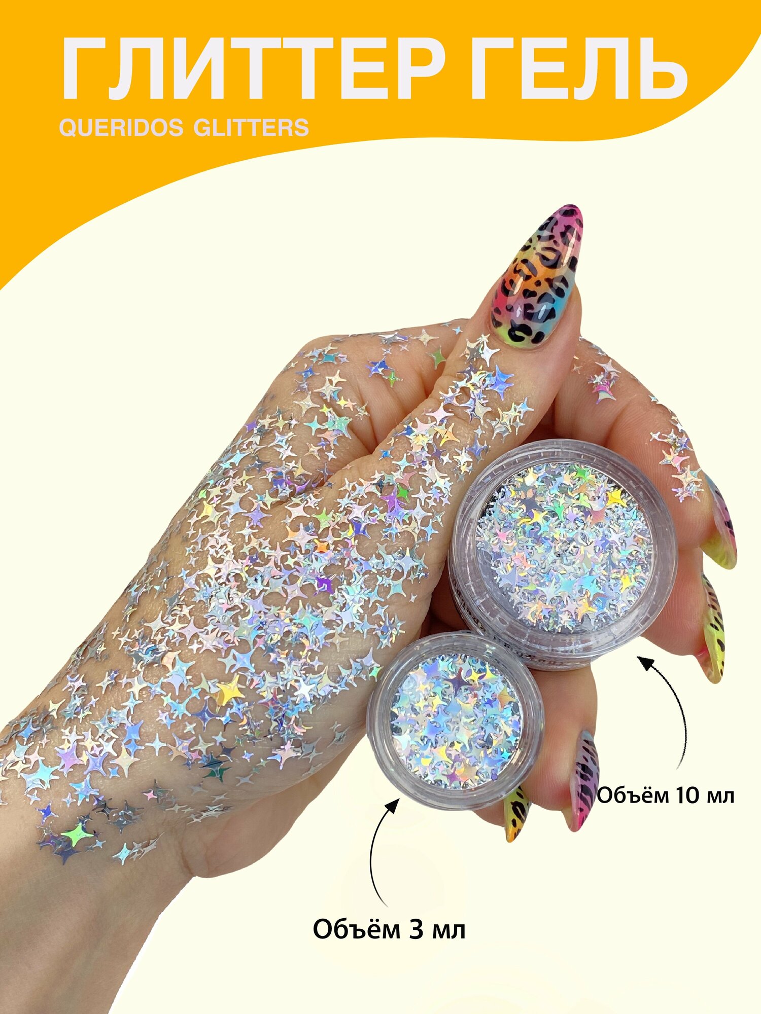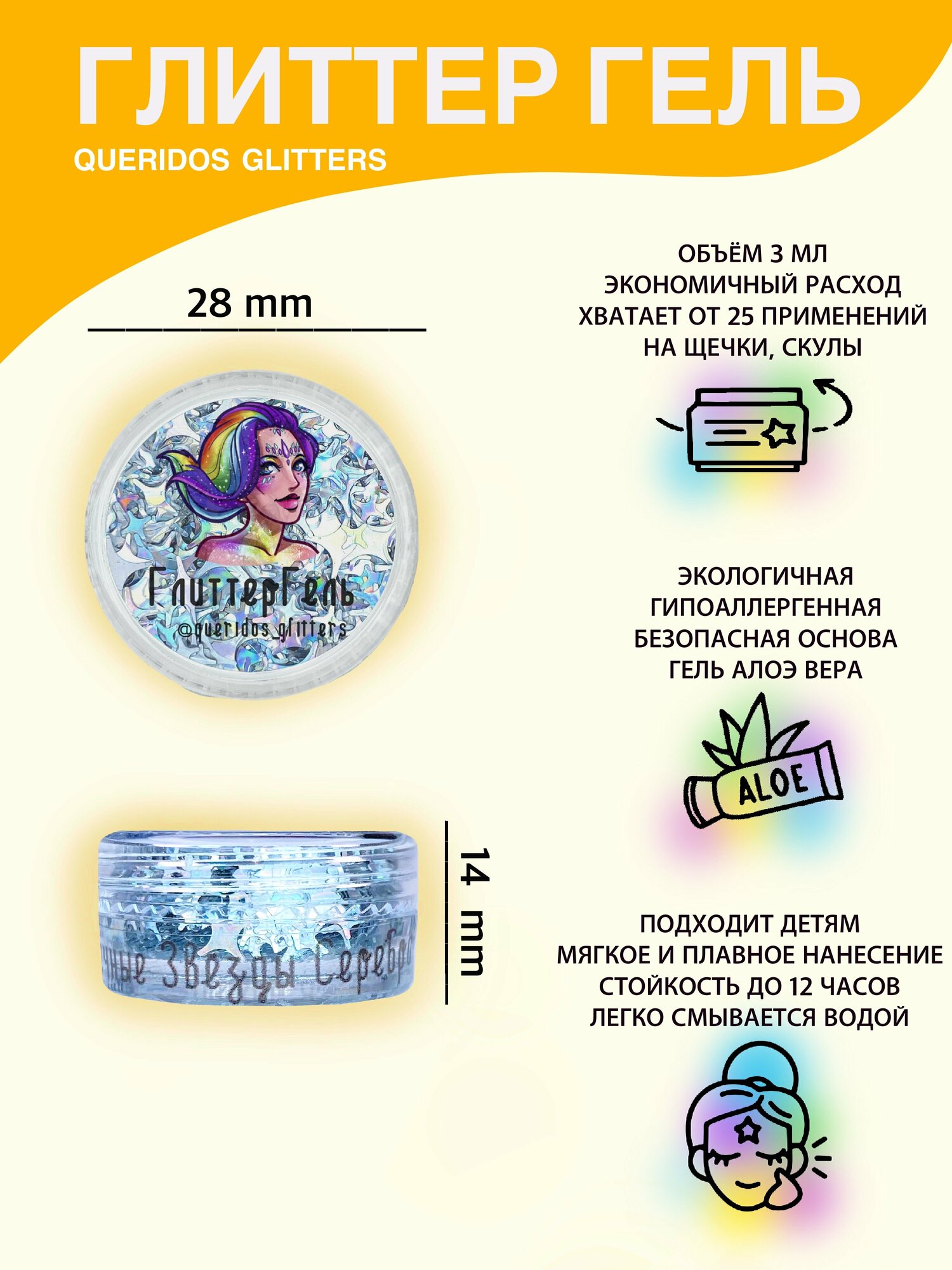 Queridos Glitters ГлиттерГель. Блёстки для лица и тела. Цвет "Звезды Айсберг" 3 мл.