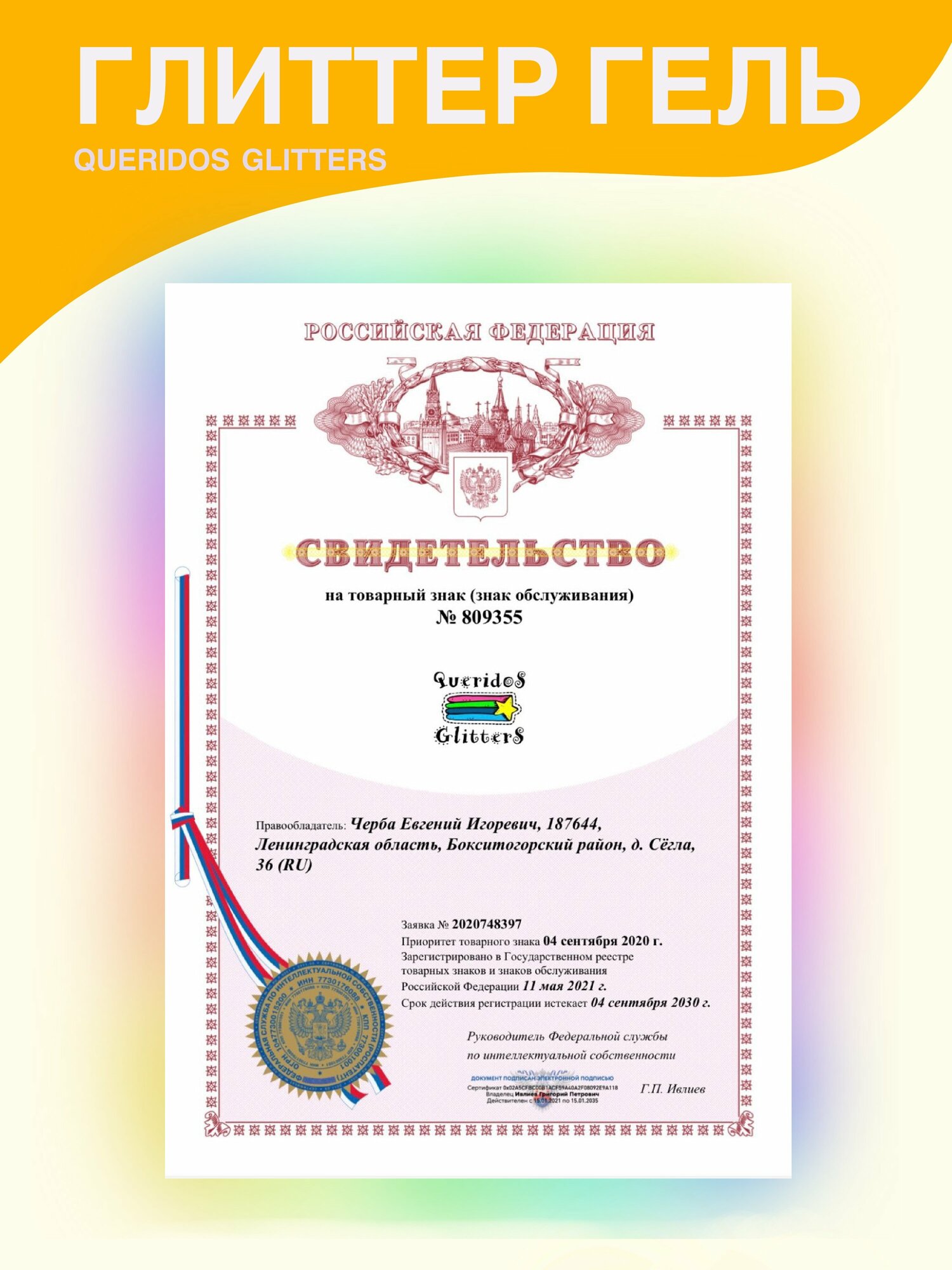 Queridos Glitters ГлиттерГель. Блёстки для лица и тела. Цвет "Мир" 3 мл.