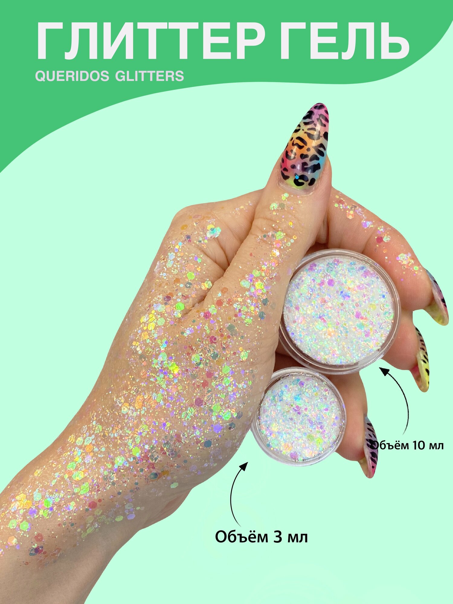 Queridos Glitters ГлиттерГель. Блёстки для лица и тела. Цвет "Глянец" 3 мл.