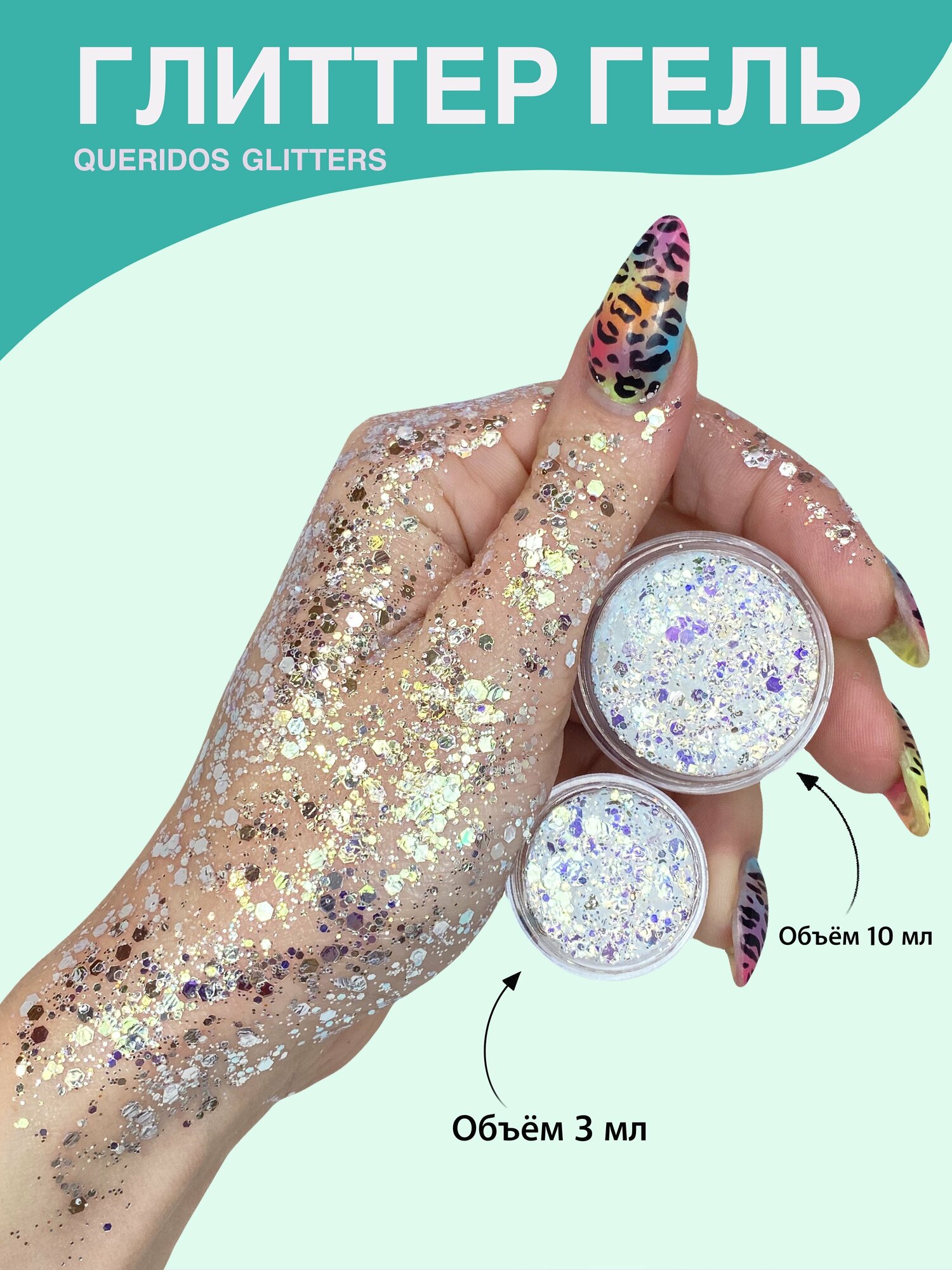 Queridos Glitters ГлиттерГель. Блёстки для лица и тела. Цвет "Глянец" 3 мл.