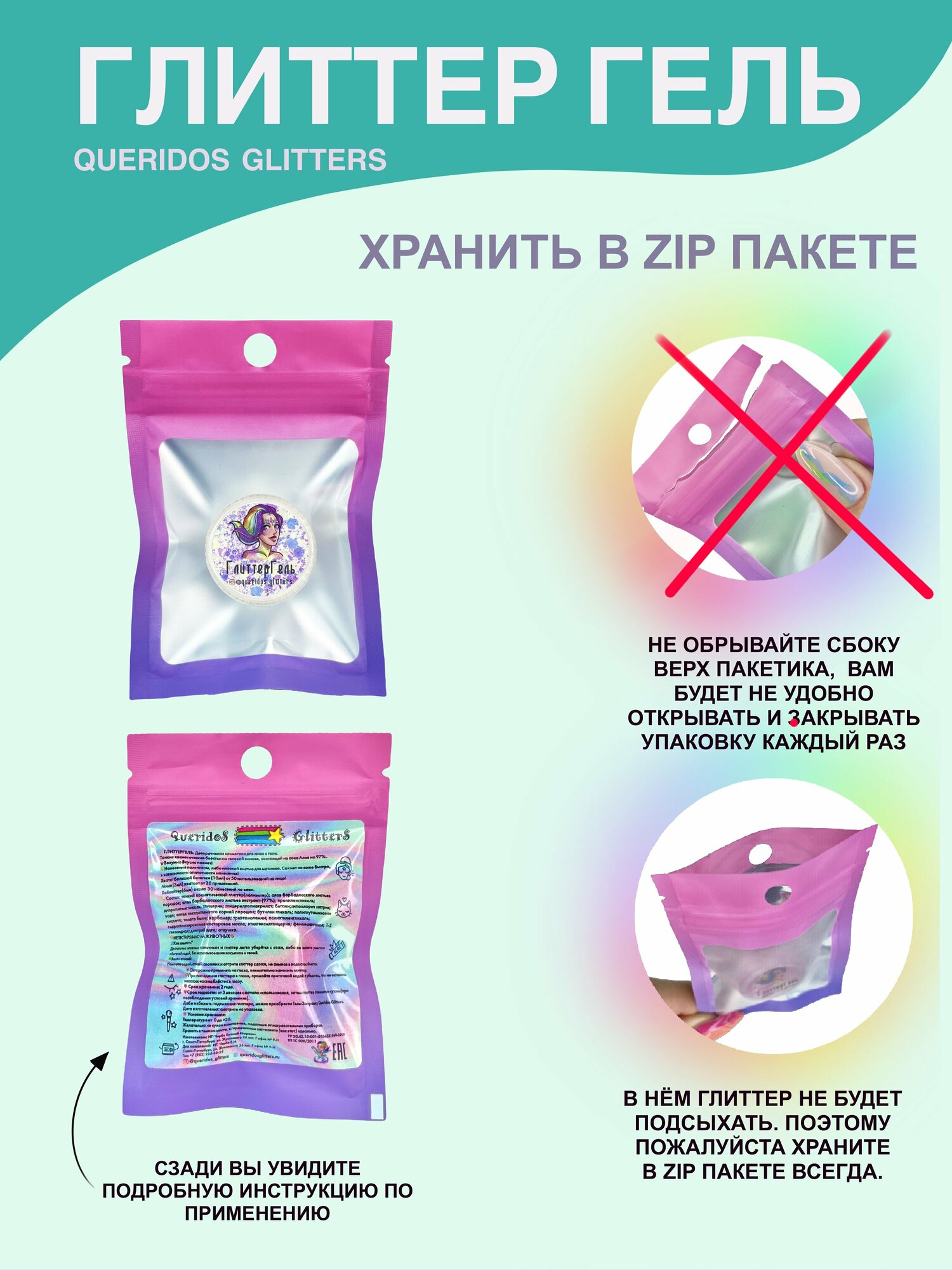 СохранитьQueridos Glitters ГлиттерГель. Блёстки для лица и тела. Цвет "Зеркало" 3 мл. интересное: