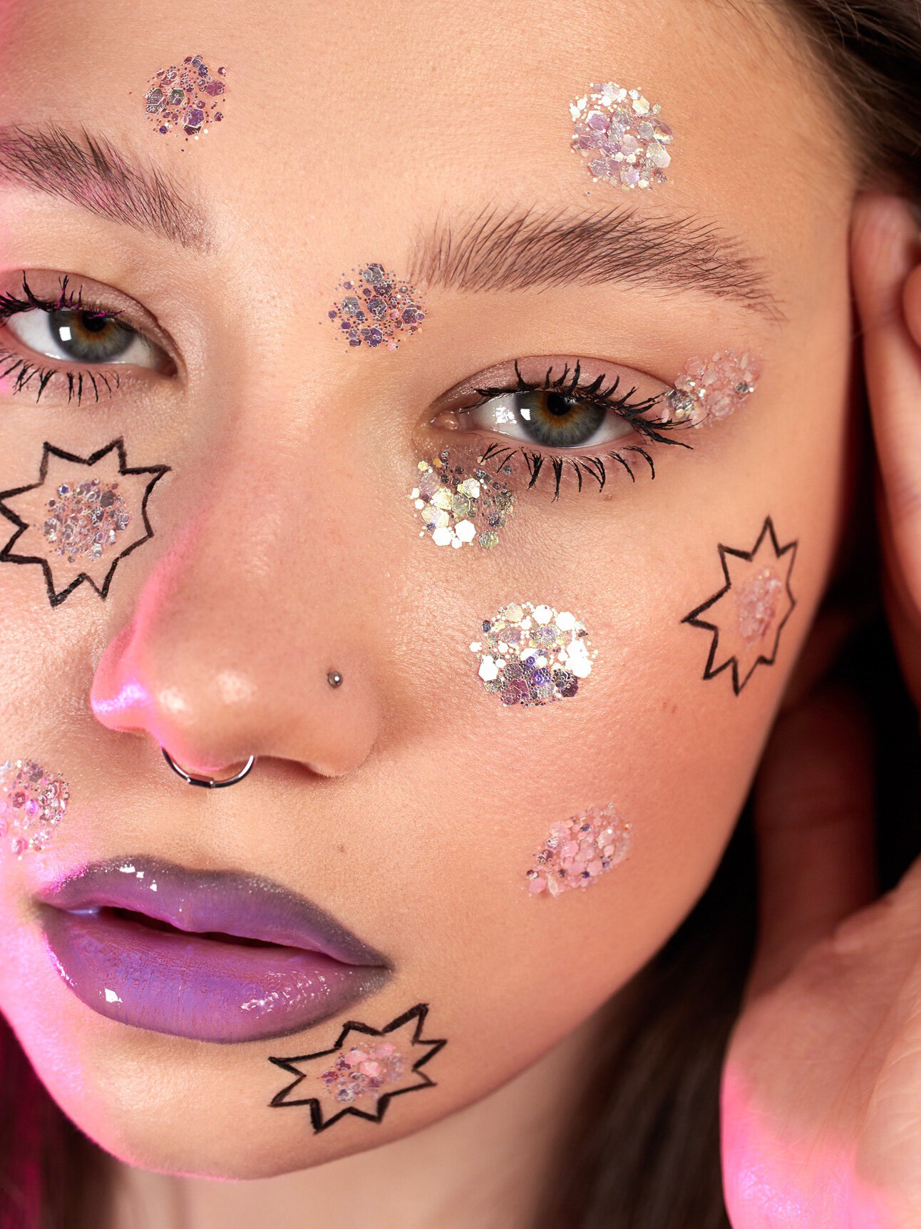 Queridos Glitters ГлиттерГель. Блёстки для лица и тела. Цвет "Звёзды Галактики Пинк" 3 мл.