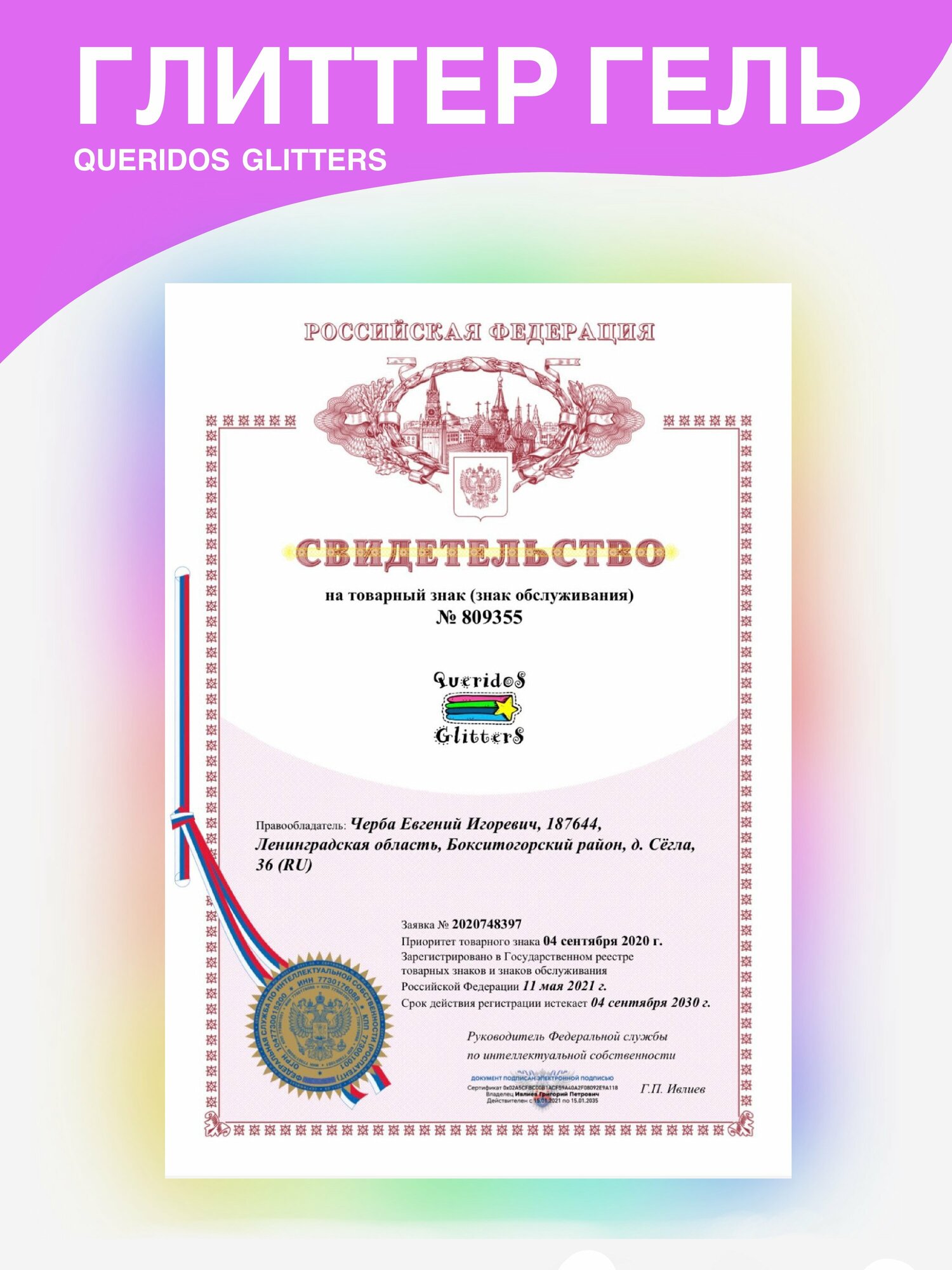 Queridos Glitters ГлиттерГель. Блёстки для лица и тела. Цвет "Королева" 3 мл.