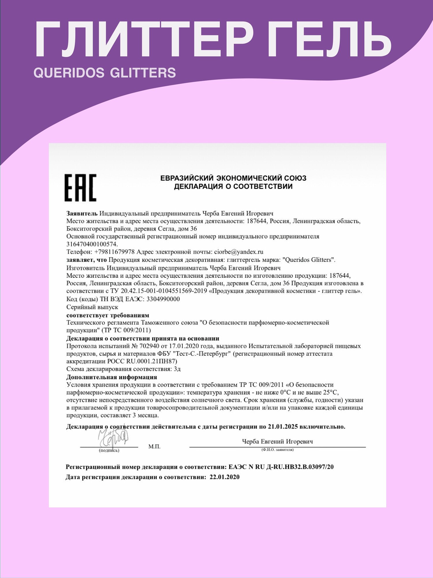 Queridos Glitters ГлиттерГель. Блёстки для лица и тела. Цвет "Любовь" 3 мл.