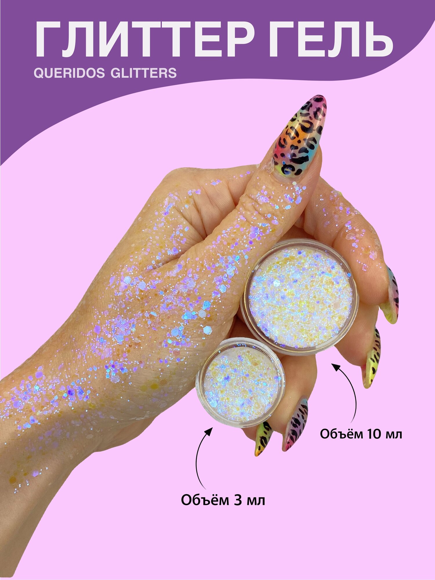 Queridos Glitters ГлиттерГель. Блёстки для лица и тела. Цвет "Спектр" 3 мл.