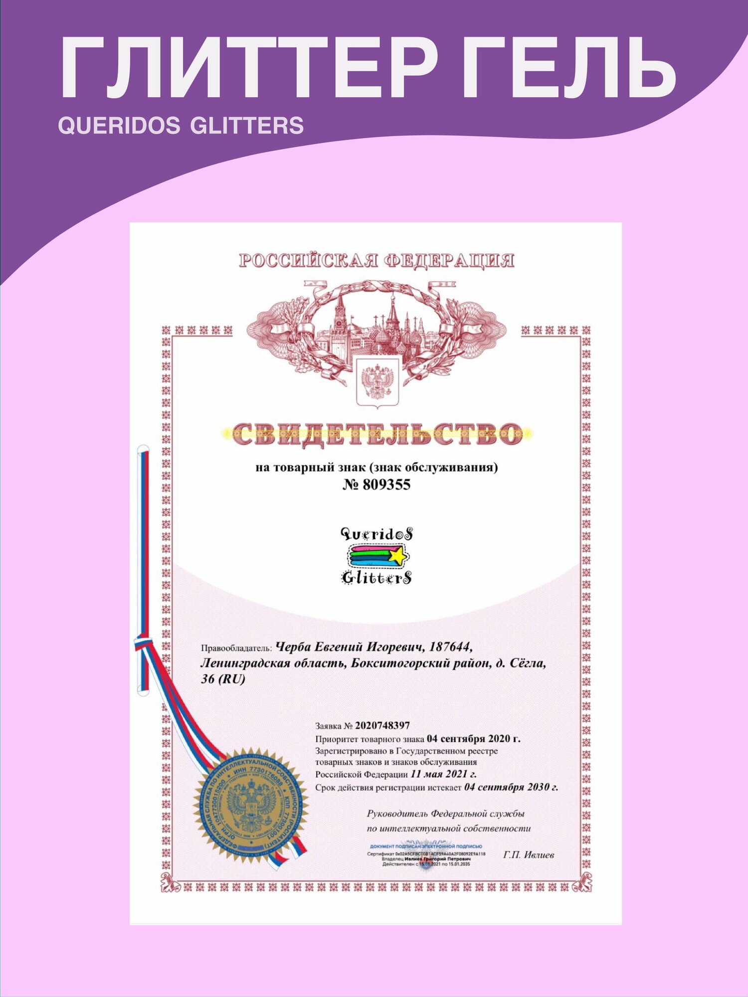 Queridos Glitters ГлиттерГель. Блёстки для лица и тела. Цвет "Фиолент" 3 мл.