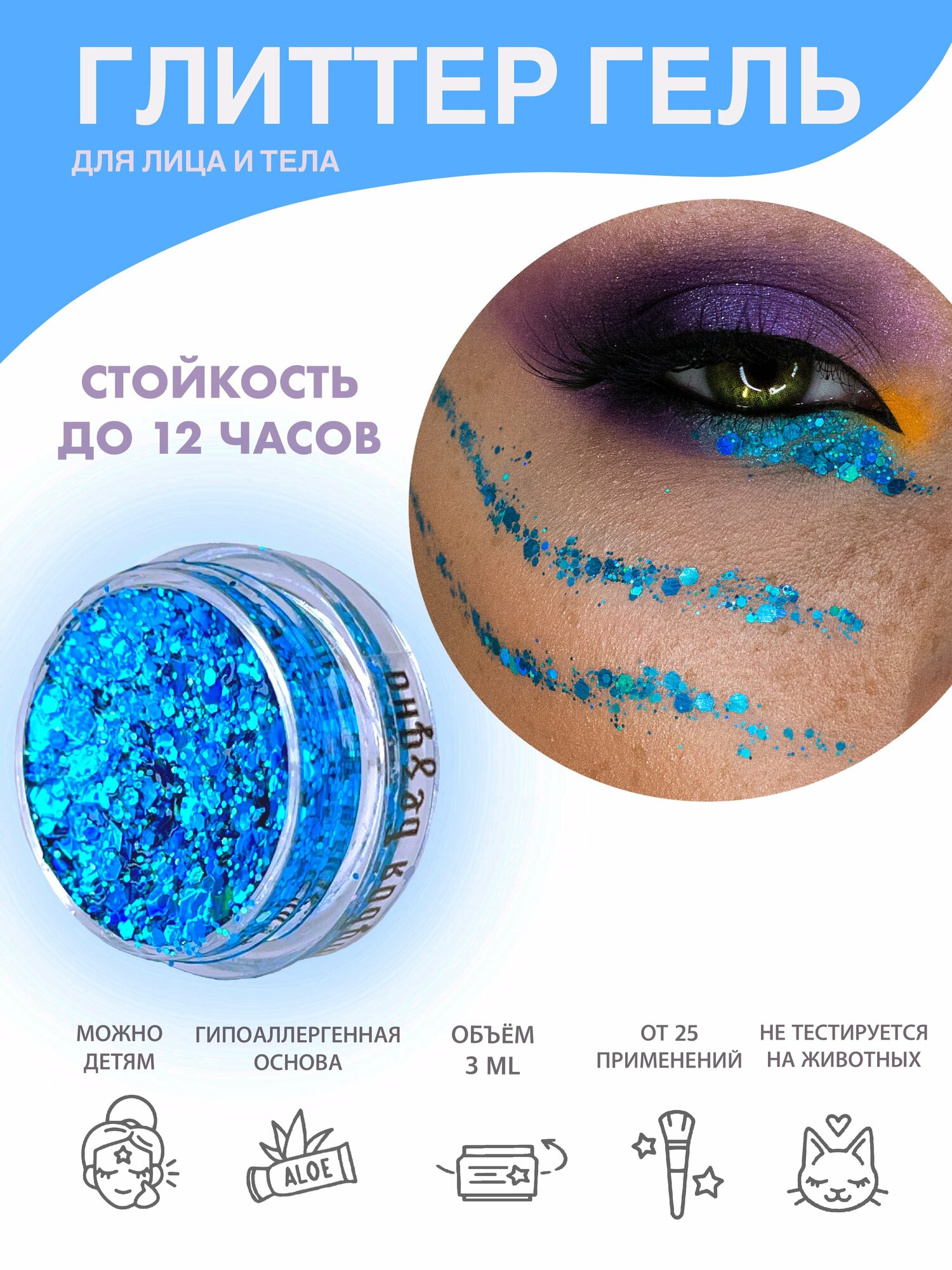 Queridos Glitters ГлиттерГель. Блёстки для лица и тела. Цвет "Небо" 3 мл.