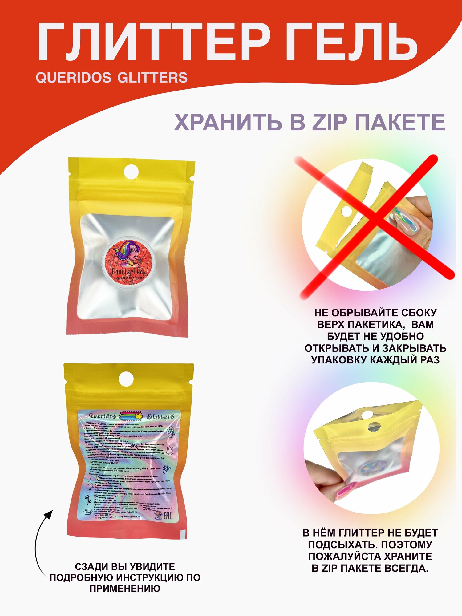 Queridos Glitters ГлиттерГель. Блёстки для лица и тела. Цвет "Глянец" 3 мл.