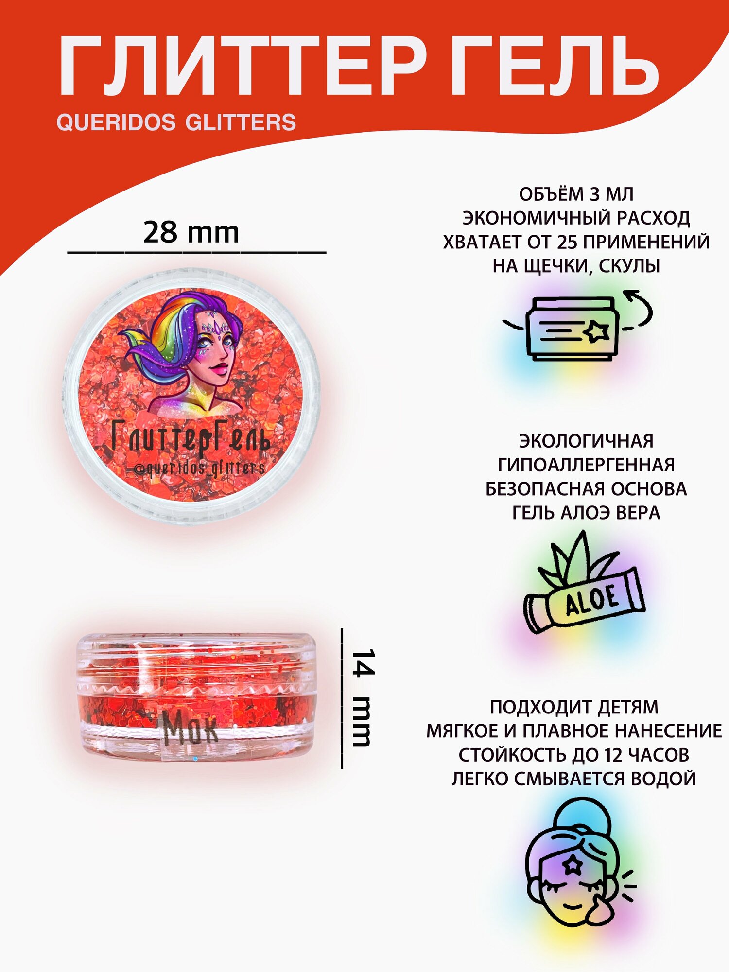 Купить Queridos Glitters ГлиттерГель. Блёстки для лица и тела. Цвет "Мак" 3 мл.