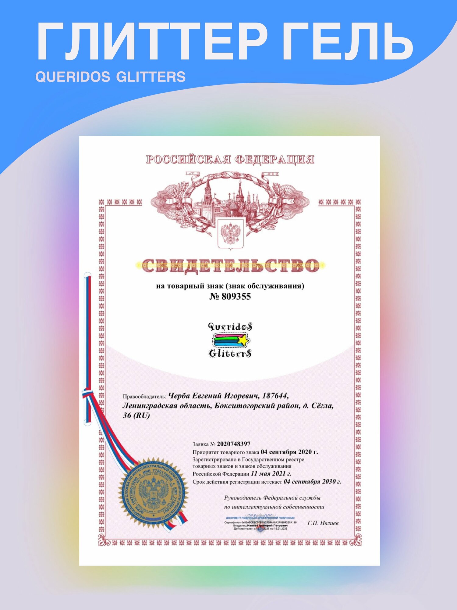 Queridos Glitters ГлиттерГель. Блёстки для лица и тела. Цвет "Мир" 3 мл.