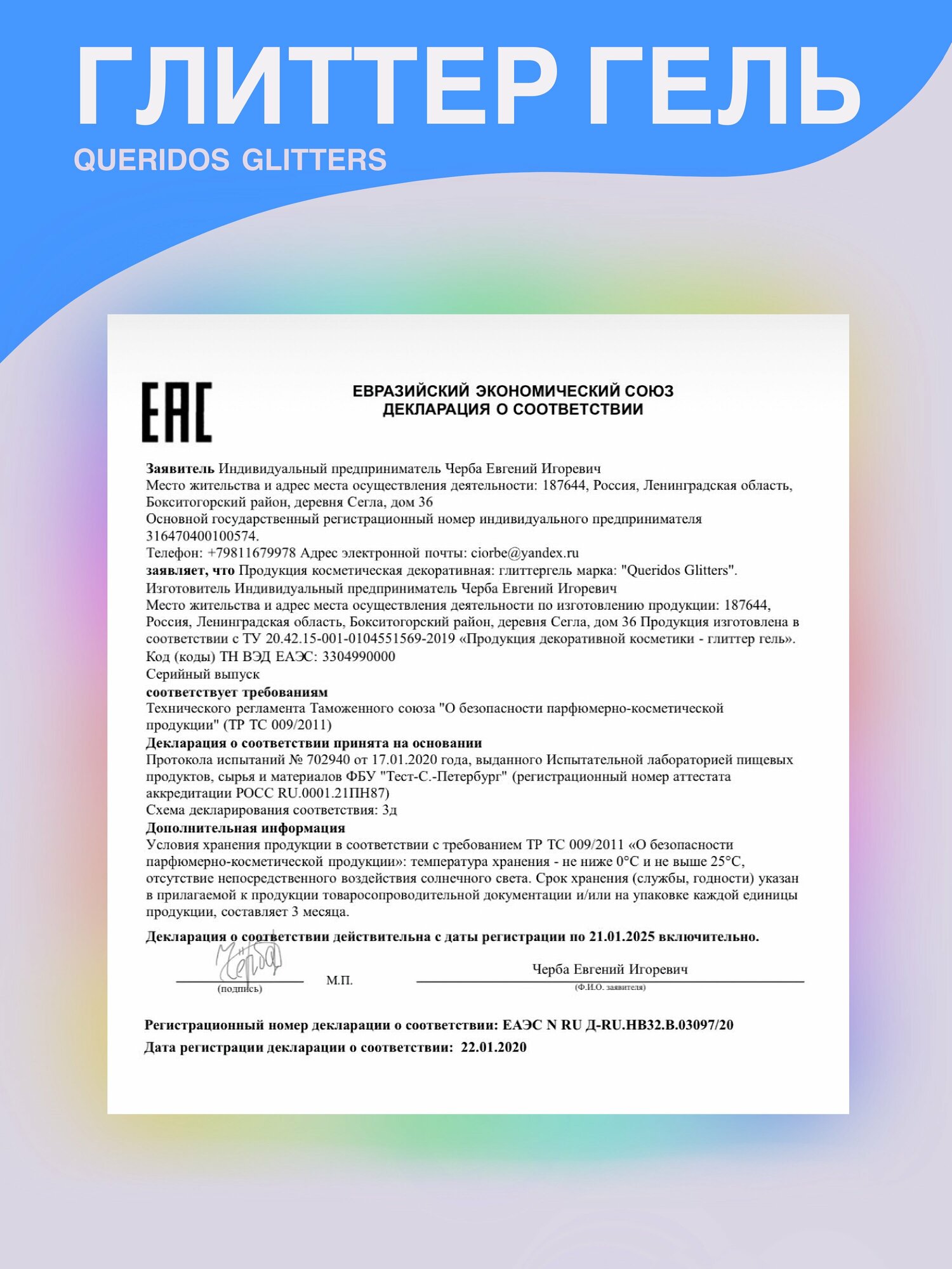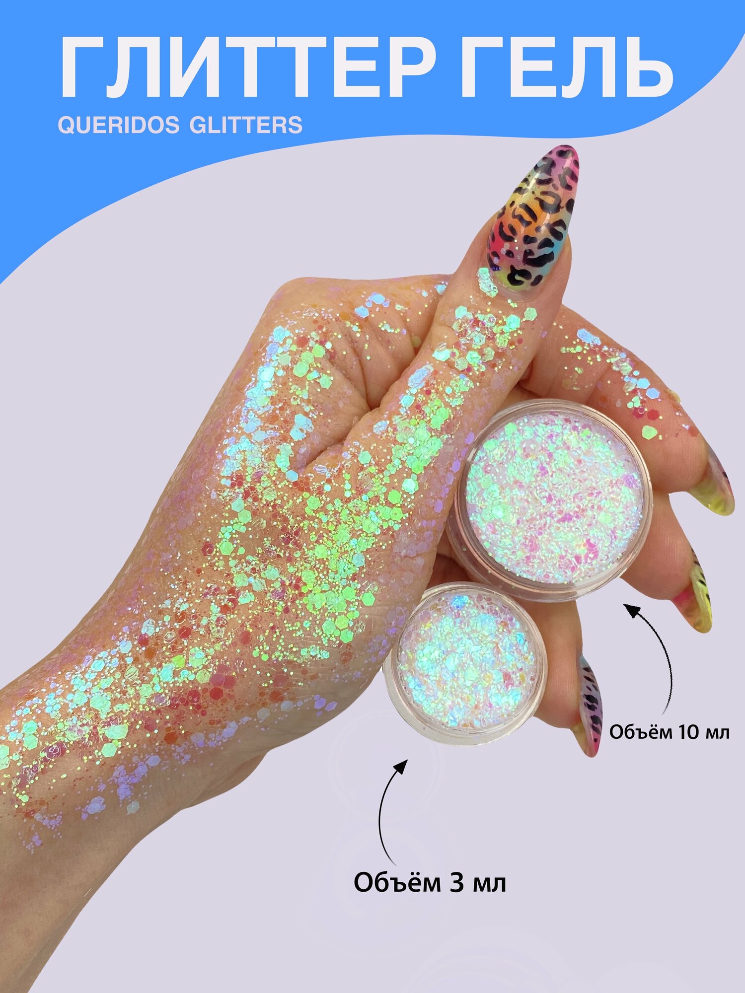 Queridos Glitters ГлиттерГель. Блёстки для лица и тела. Цвет "Глянец" 3 мл.