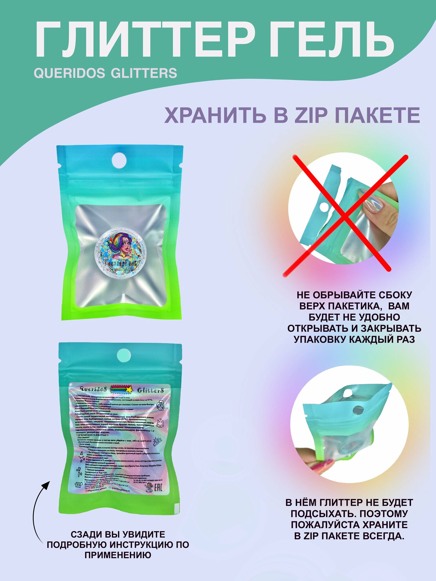Queridos Glitters ГлиттерГель. Блёстки для лица и тела. Цвет "Глянец" 3 мл.