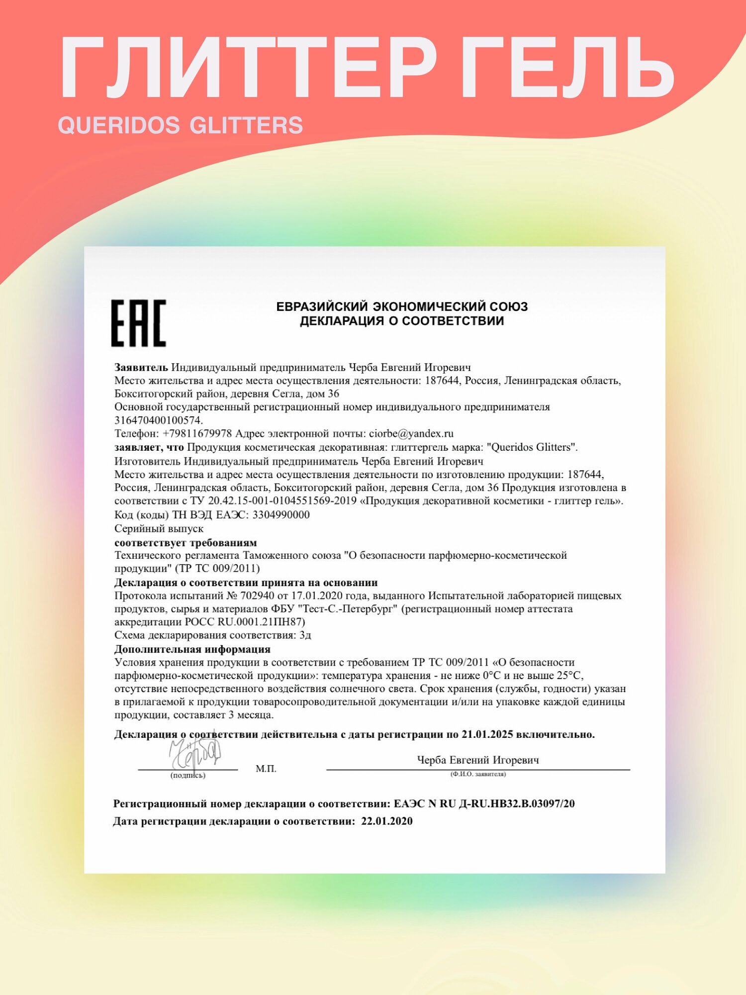 Queridos Glitters ГлиттерГель. Блёстки для лица и тела. Цвет "Спектр" 3 мл.