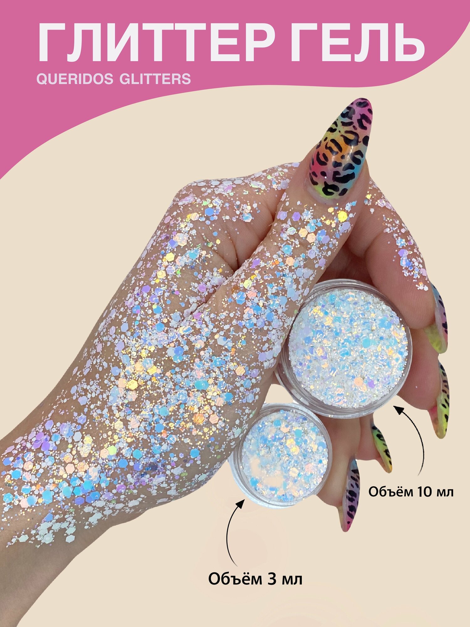 Queridos Glitters ГлиттерГель. Блёстки для лица и тела. Цвет "Спектр" 3 мл.
