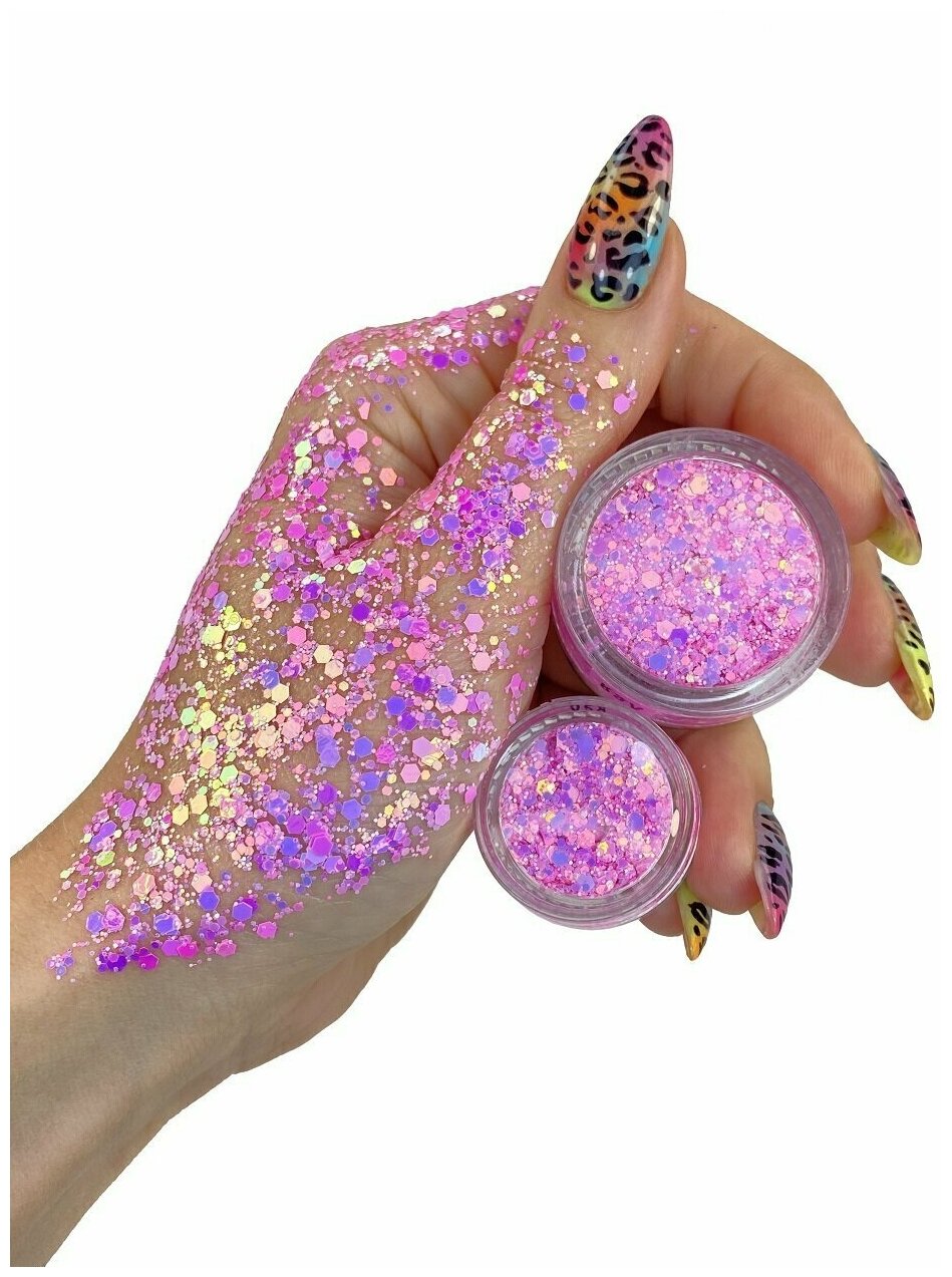 Queridos Glitters ГлиттерГель. Блёстки для лица и тела. Цвет "Фламинго" 3 мл.