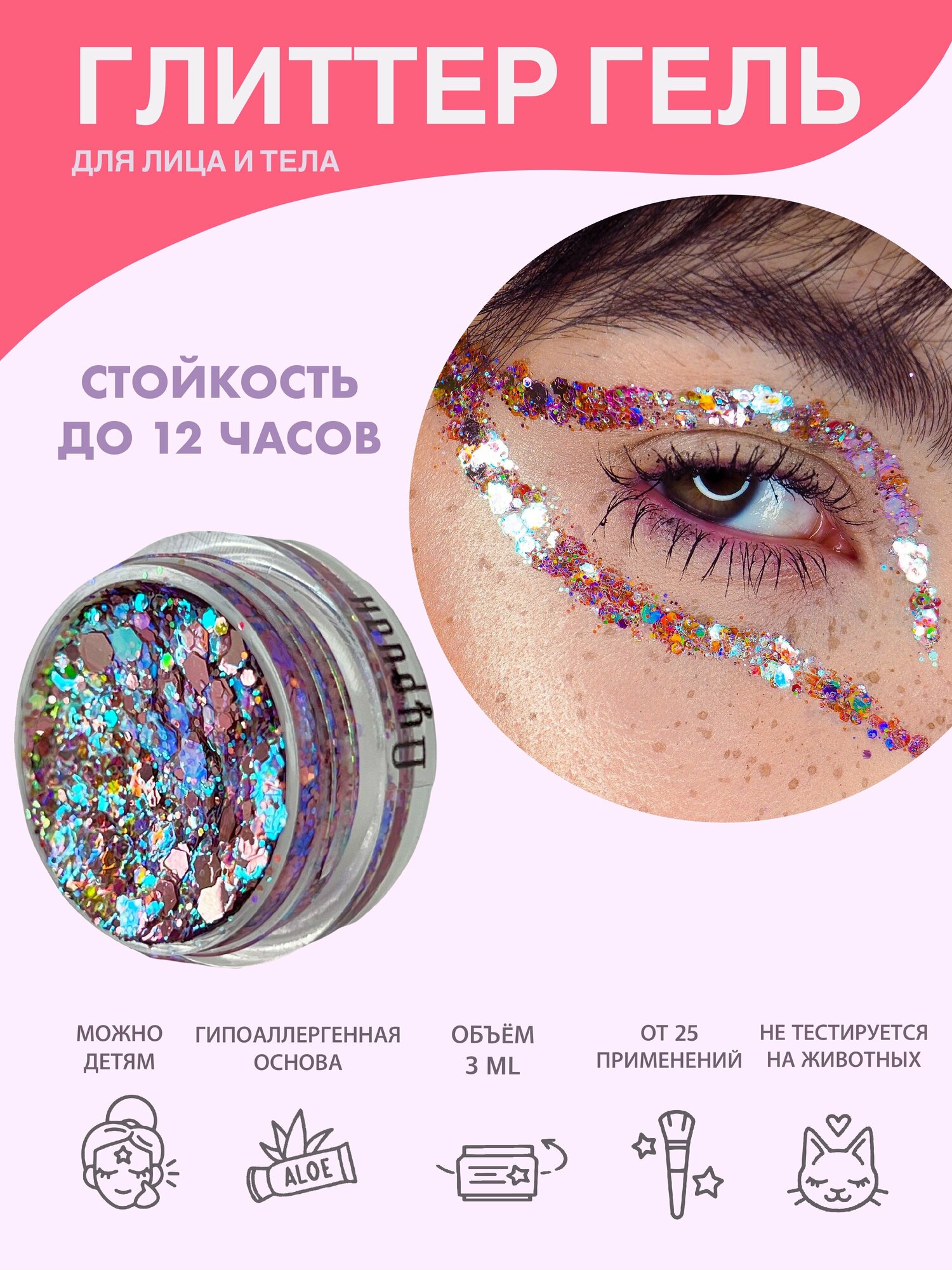 Queridos Glitters Глиттергель. Блёстки для лица и тела. Цвет "Венера" 3 мл.