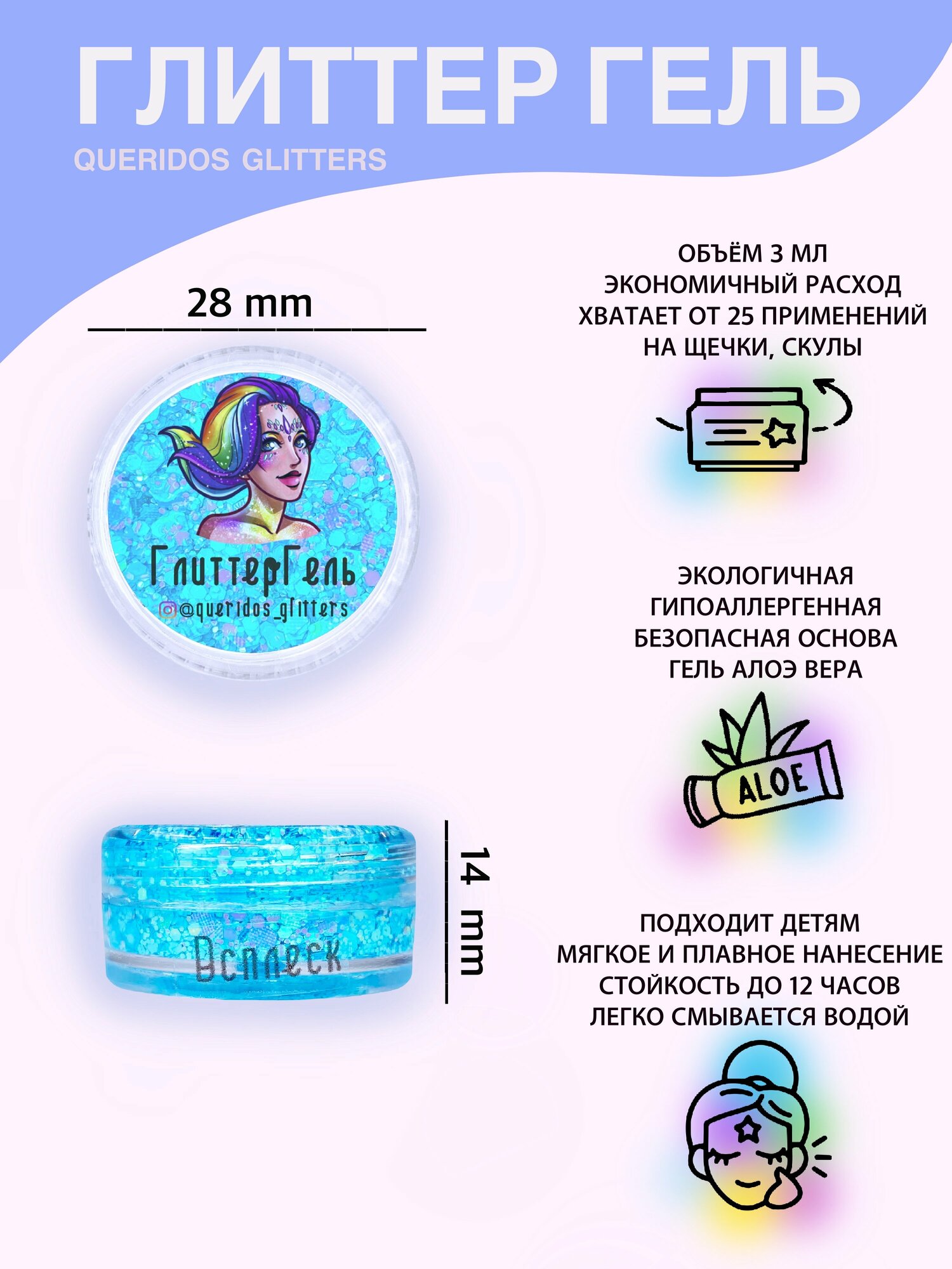 Купить Queridos Glitters ГлиттерГель. Блёстки для лица и тела. Цвет "Всплеск" 3 мл.