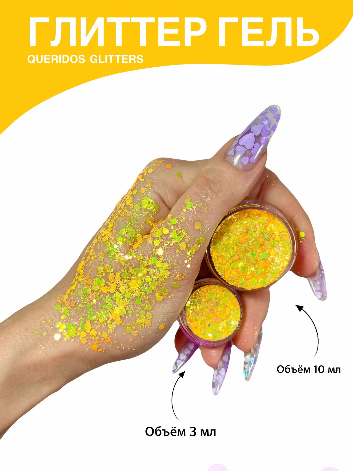 Queridos Glitters ГлиттерГель. Блёстки для лица и тела. Цвет "Глянец" 3 мл.