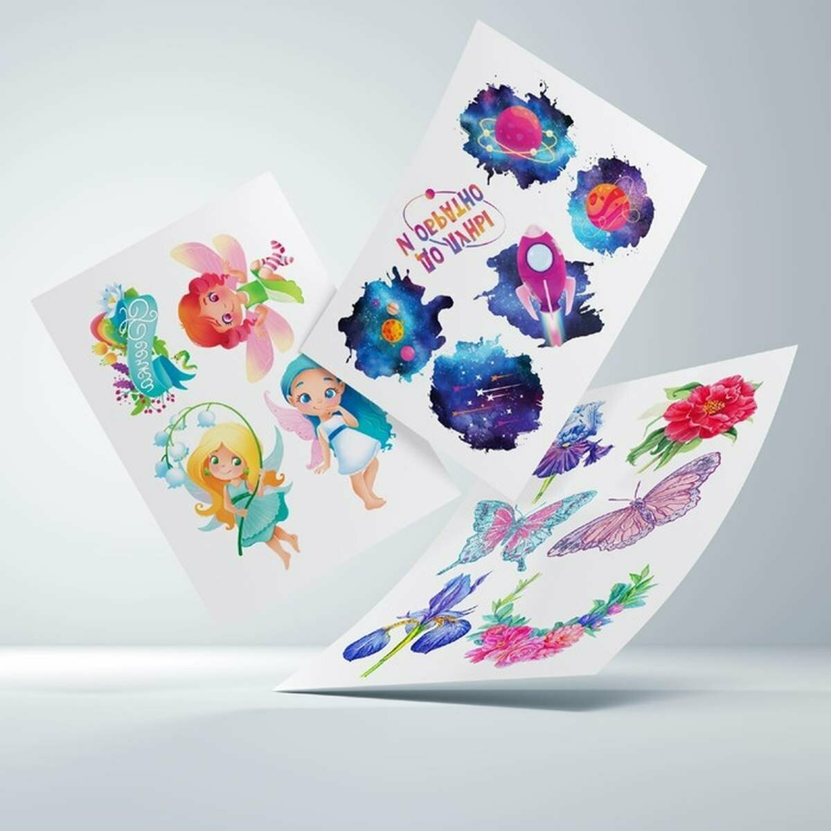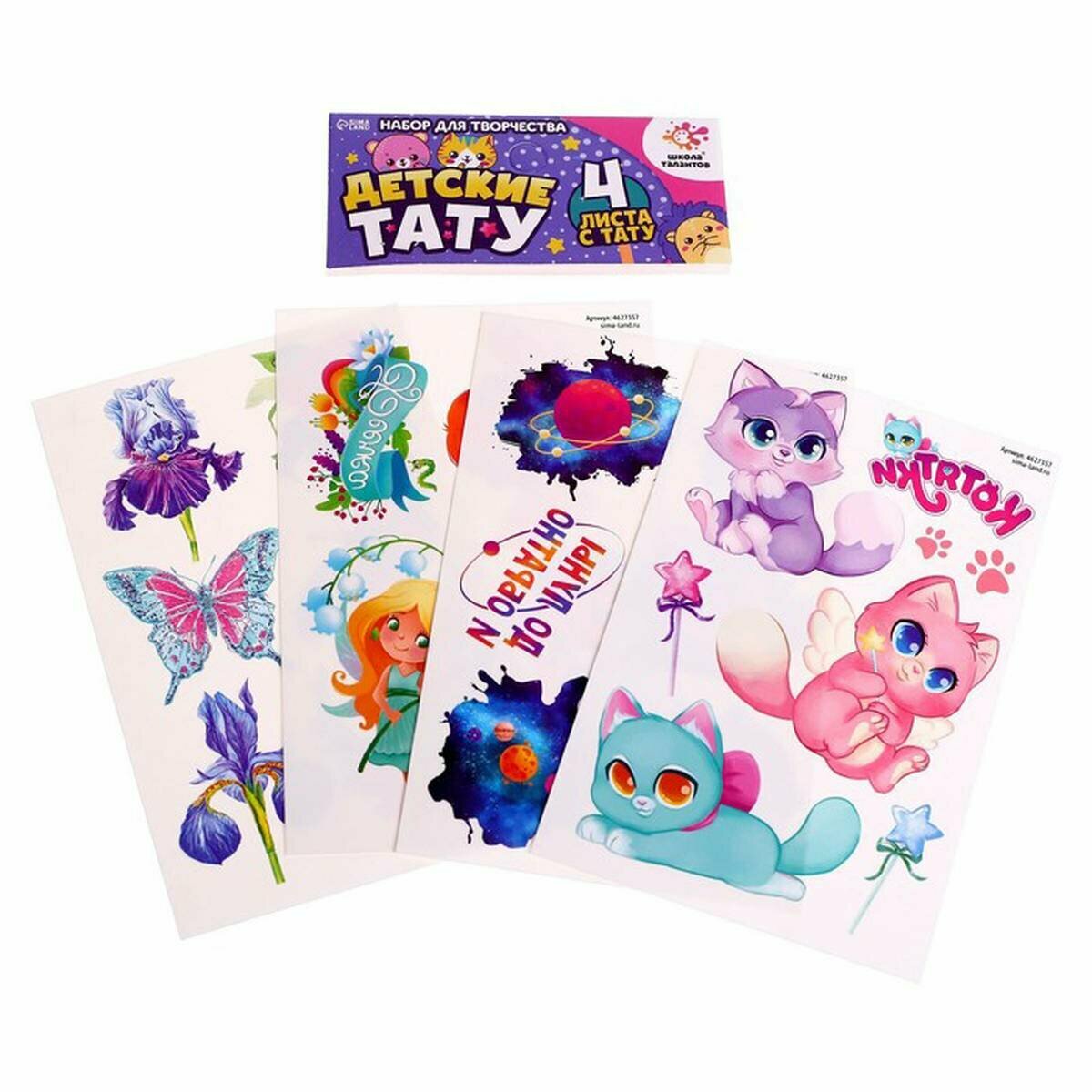 Купить Переводные татуировки детские "Микс", тату — 4 листа, 1 наб.