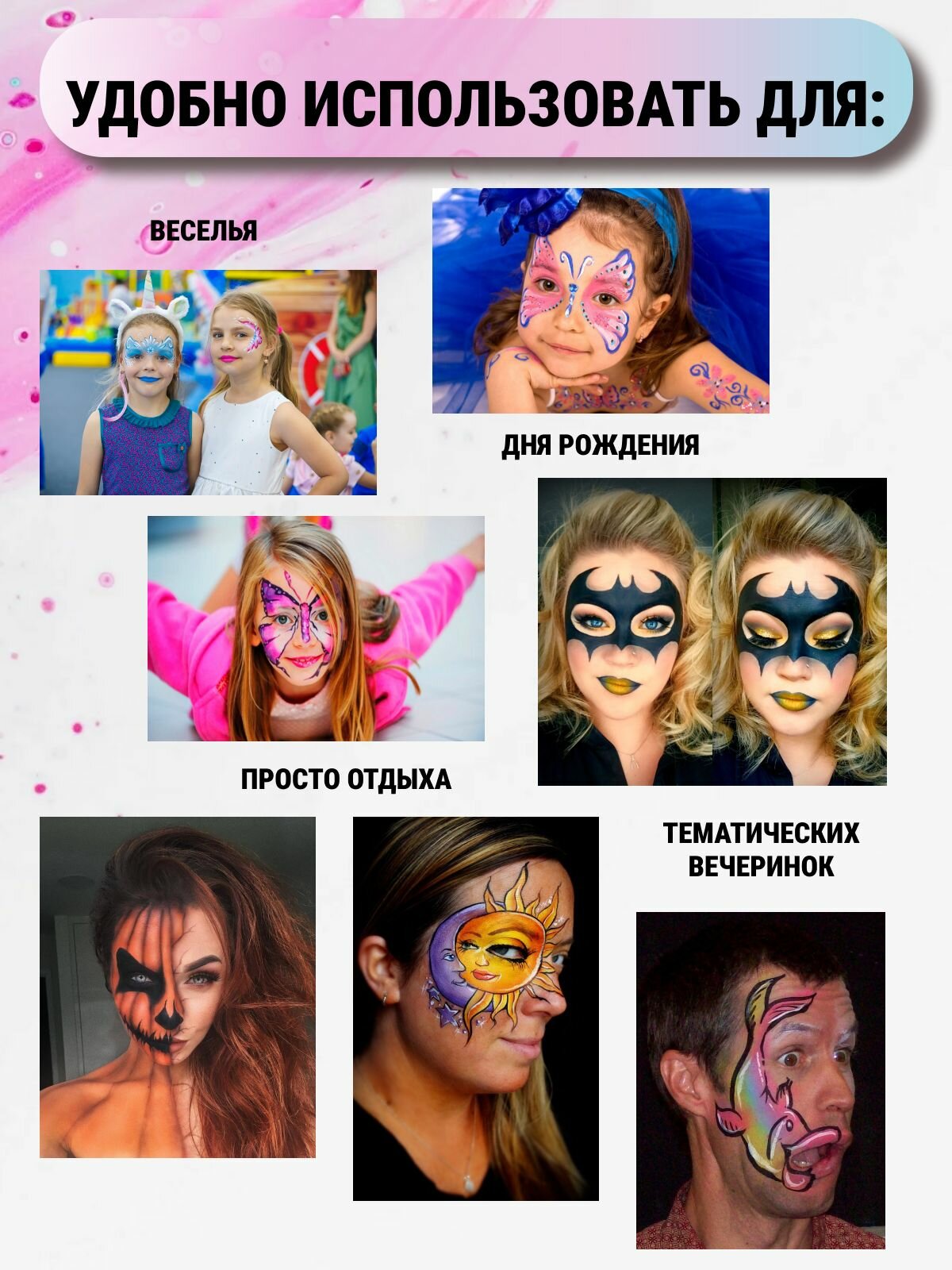 Ниже Вы можете прочитать отзывы на Аквагрим профессиональный для лица и тела, 15 цветов + 2 кисти, ознакомится с подробными характеристиками, посмотреть интересные обзоры и фотографии на Аквагрим профессиональный для лица и тела, 15 цветов + 2 кисти.