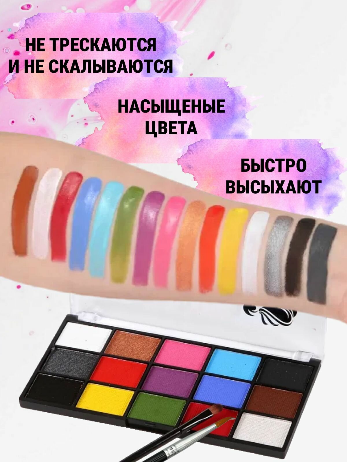 Аквагрим профессиональный для лица и тела, 15 цветов + 2 кисти интересное:
