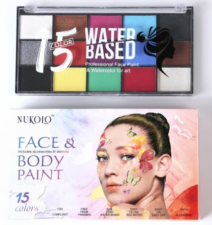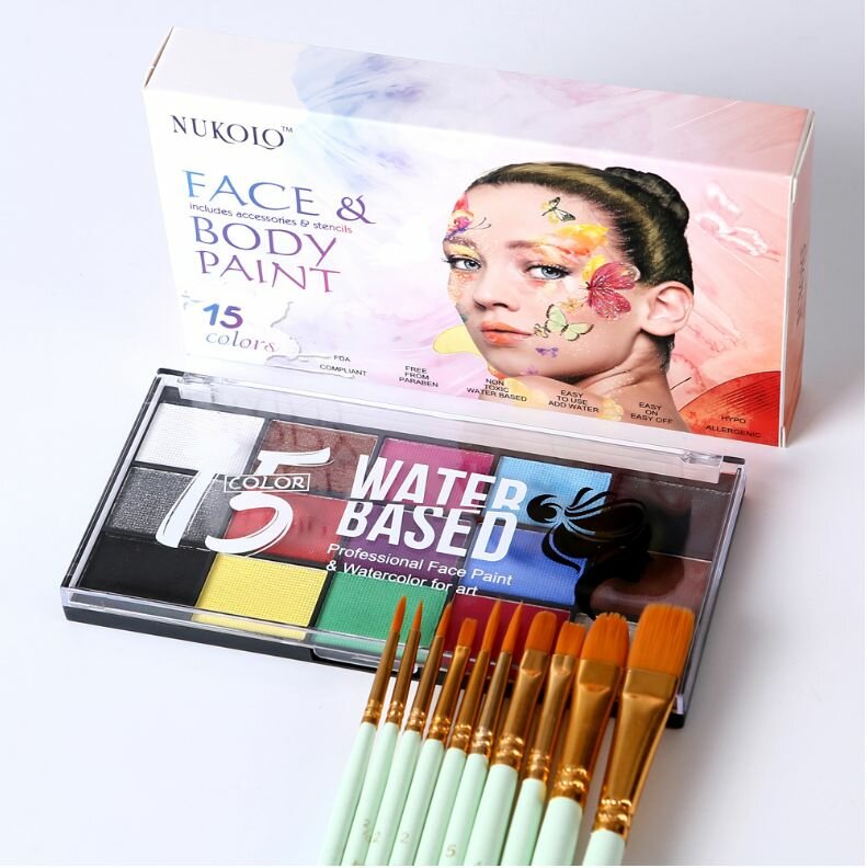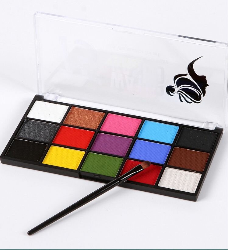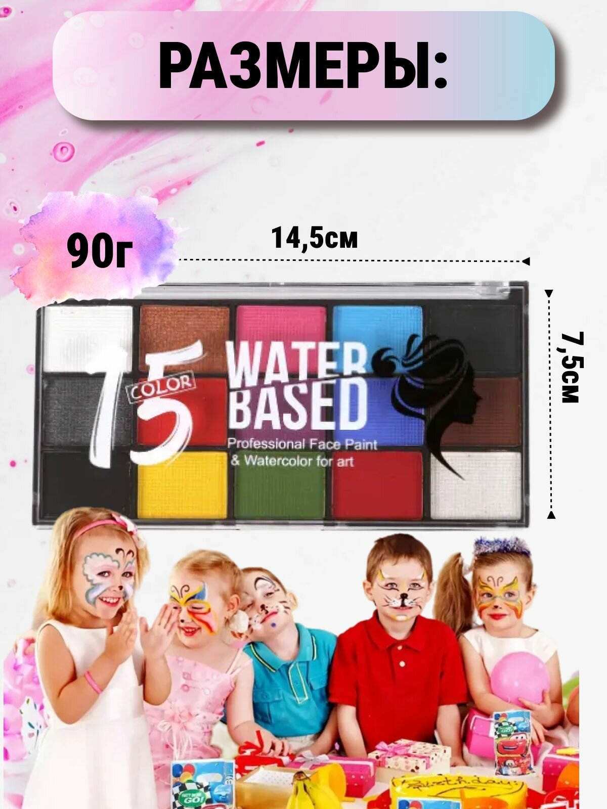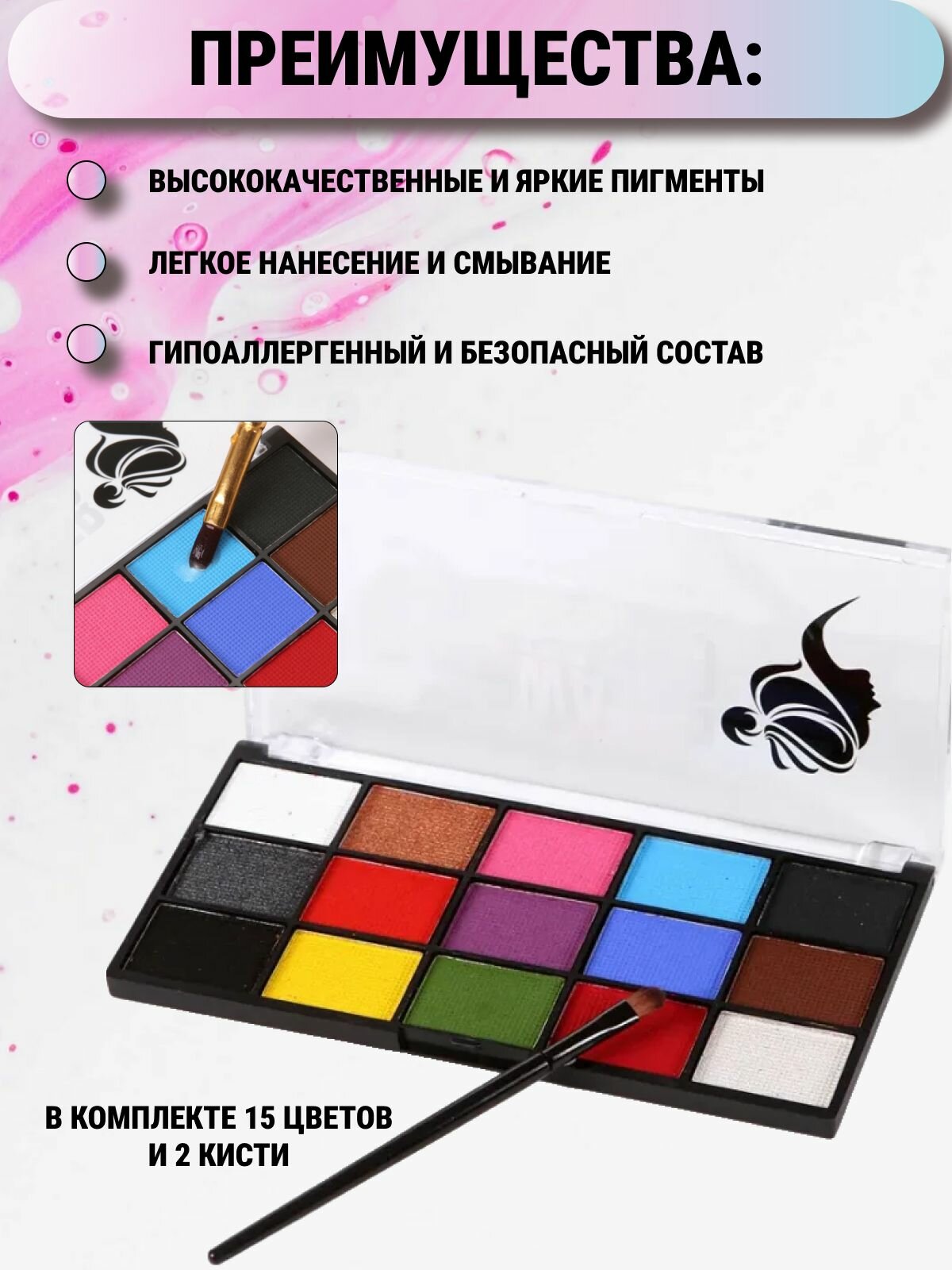 Купить Аквагрим профессиональный для лица и тела, 15 цветов + 2 кисти