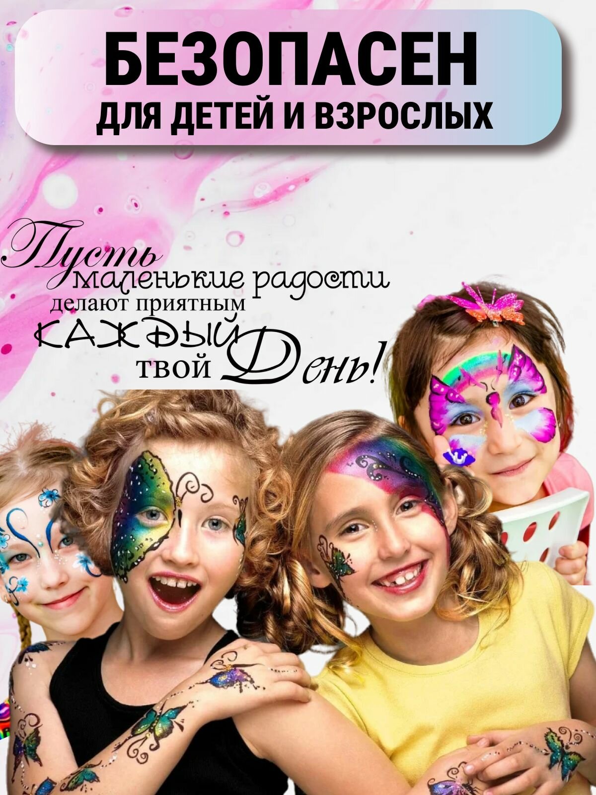 Аквагрим профессиональный для лица и тела, 42 цвета + набор кистей для рисования и трафареты для аквагрима