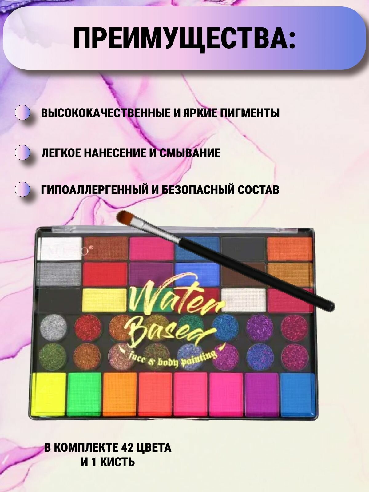 Аквагрим профессиональный для лица и тела, 42 цвета + набор кистей для рисования и трафареты для аквагрима интересное: