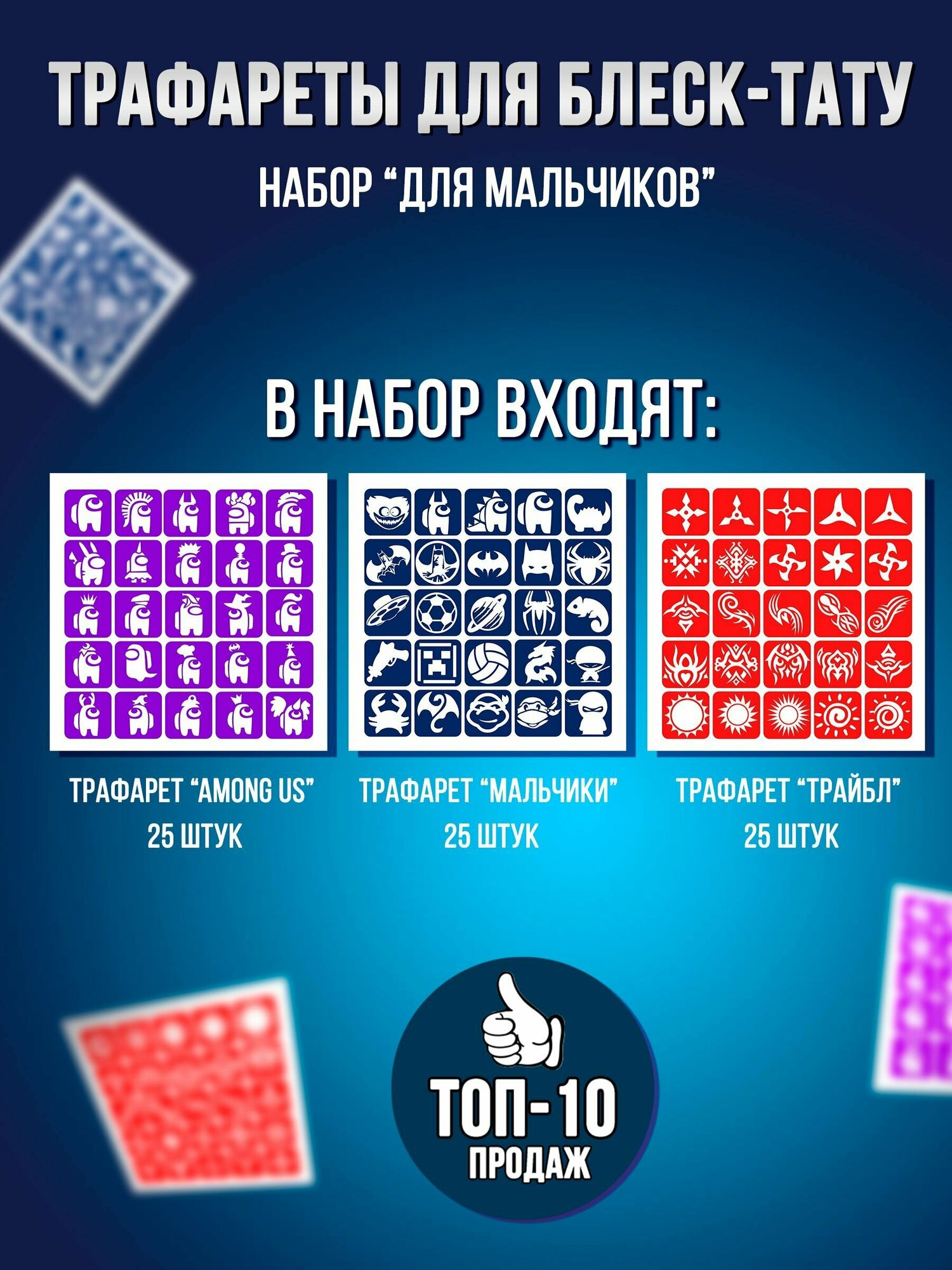 Трафареты для блеск тату , набор для Мальчиков интересное: