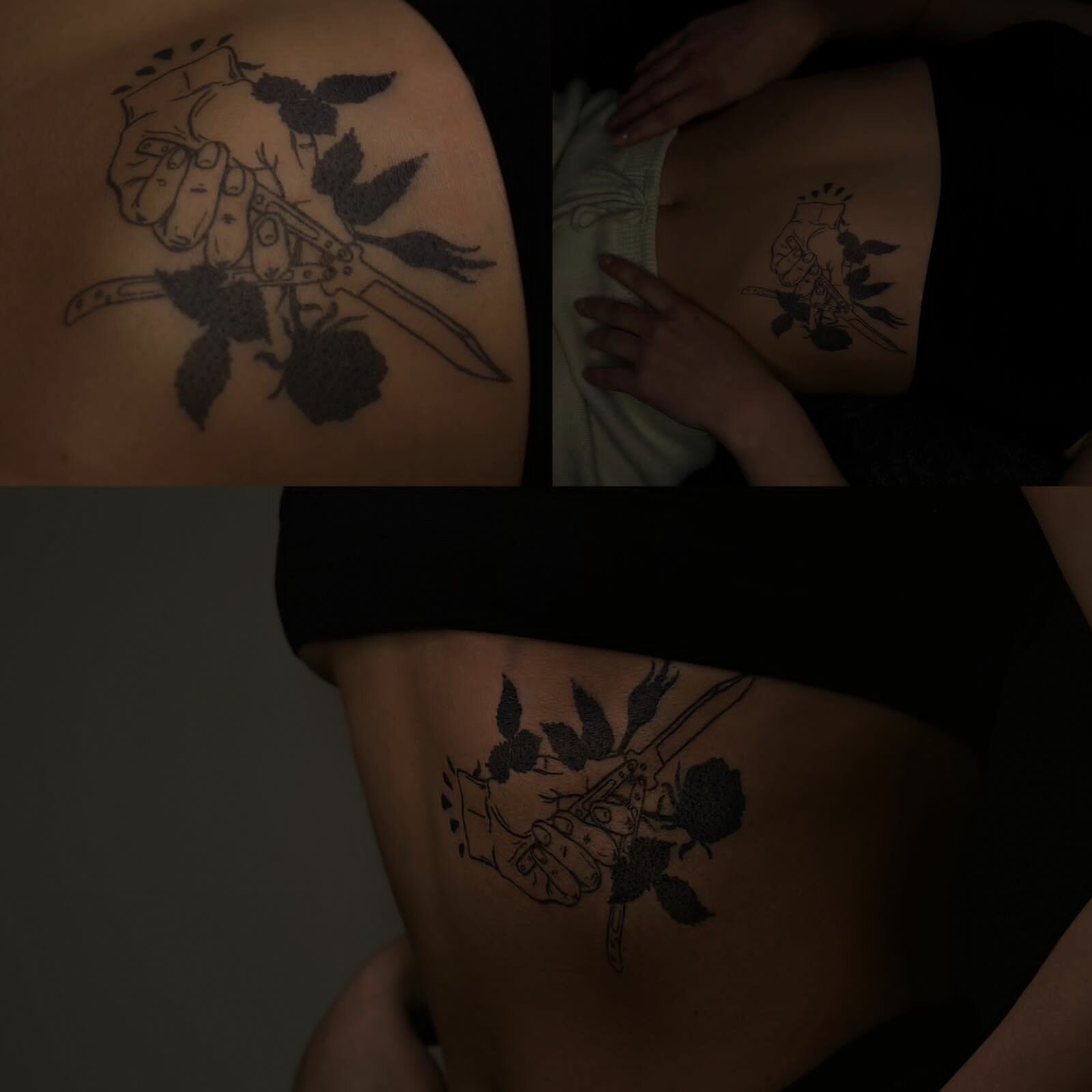 Временная переводная татуировка "Нож-бабочка и роза" интересное: