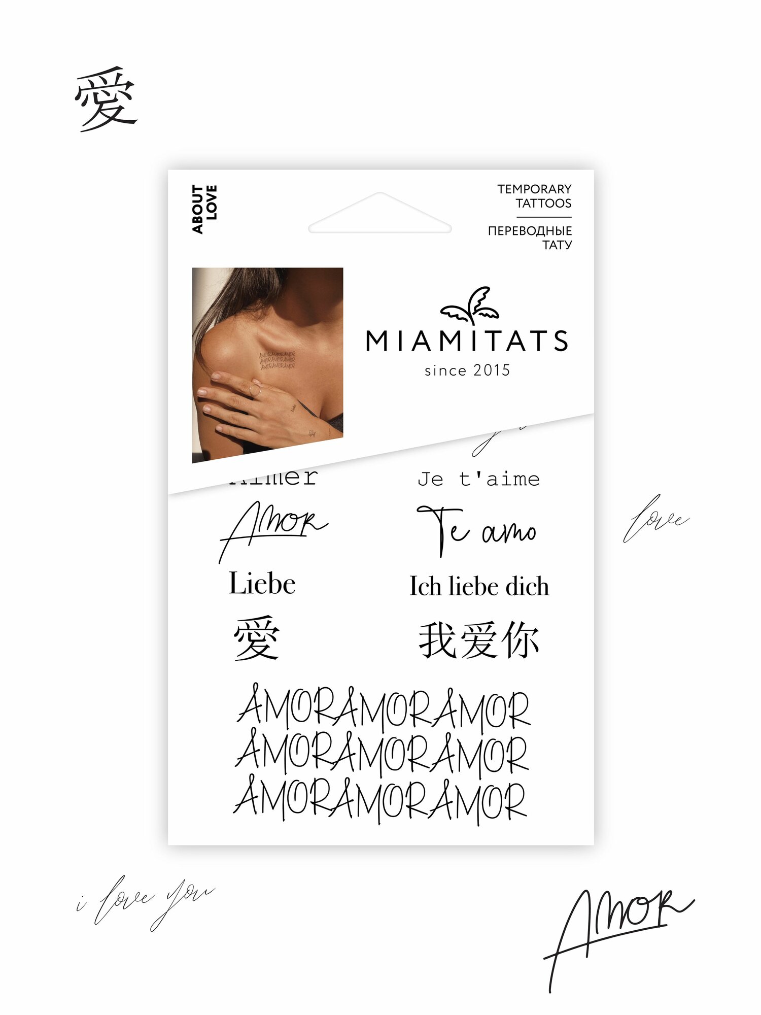 Купить MIAMITATS Переводные тату About Love (mini), ( надписи я люблю тебя на разных языках )