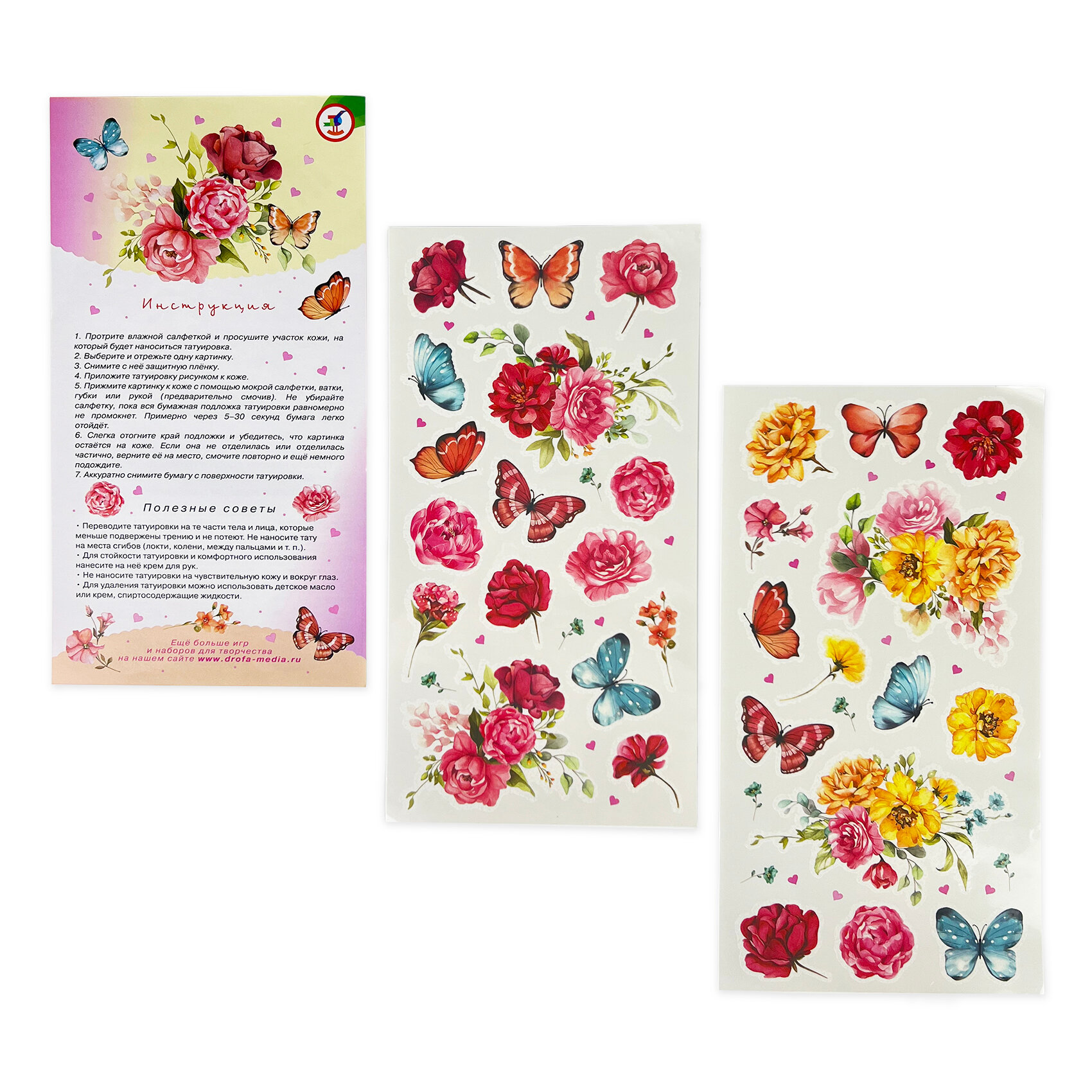 Ниже Вы можете прочитать отзывы на Переводные татуировки Дрофа-Медиа, Цветы, для девочек, 2 листа, ознакомится с подробными характеристиками, посмотреть интересные обзоры и фотографии на Переводные татуировки Дрофа-Медиа, Цветы, для девочек, 2 листа.