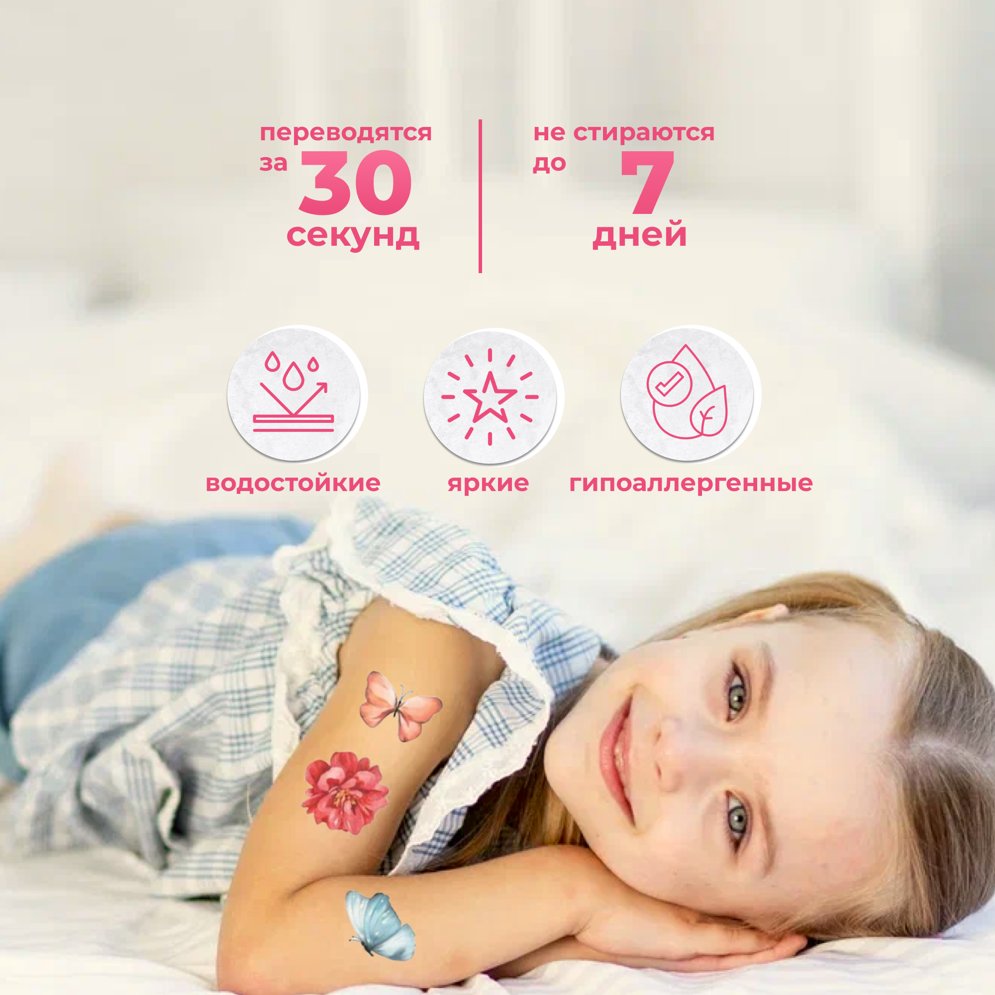 Разноцветные переводные татуировки Дрофа -Медиа, Бабочки для детей