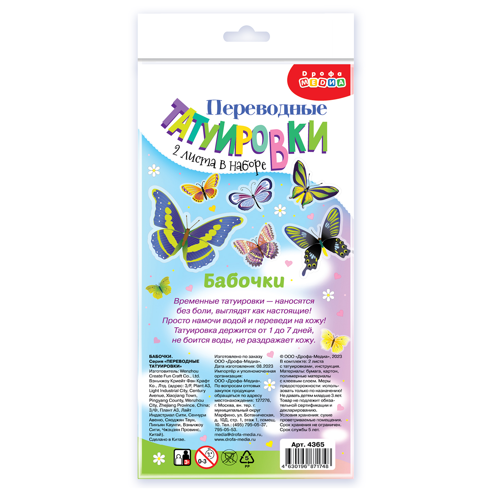 СохранитьРазноцветные переводные татуировки Дрофа -Медиа, Бабочки для детей интересное:
