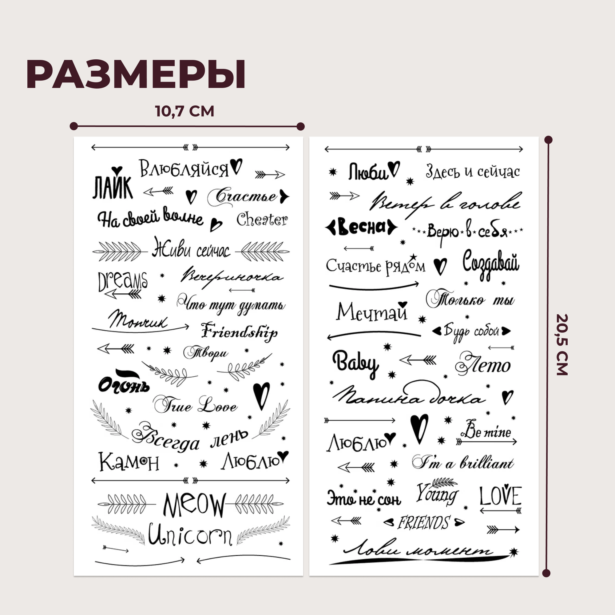 Купить Переводные татуировки. Надписи