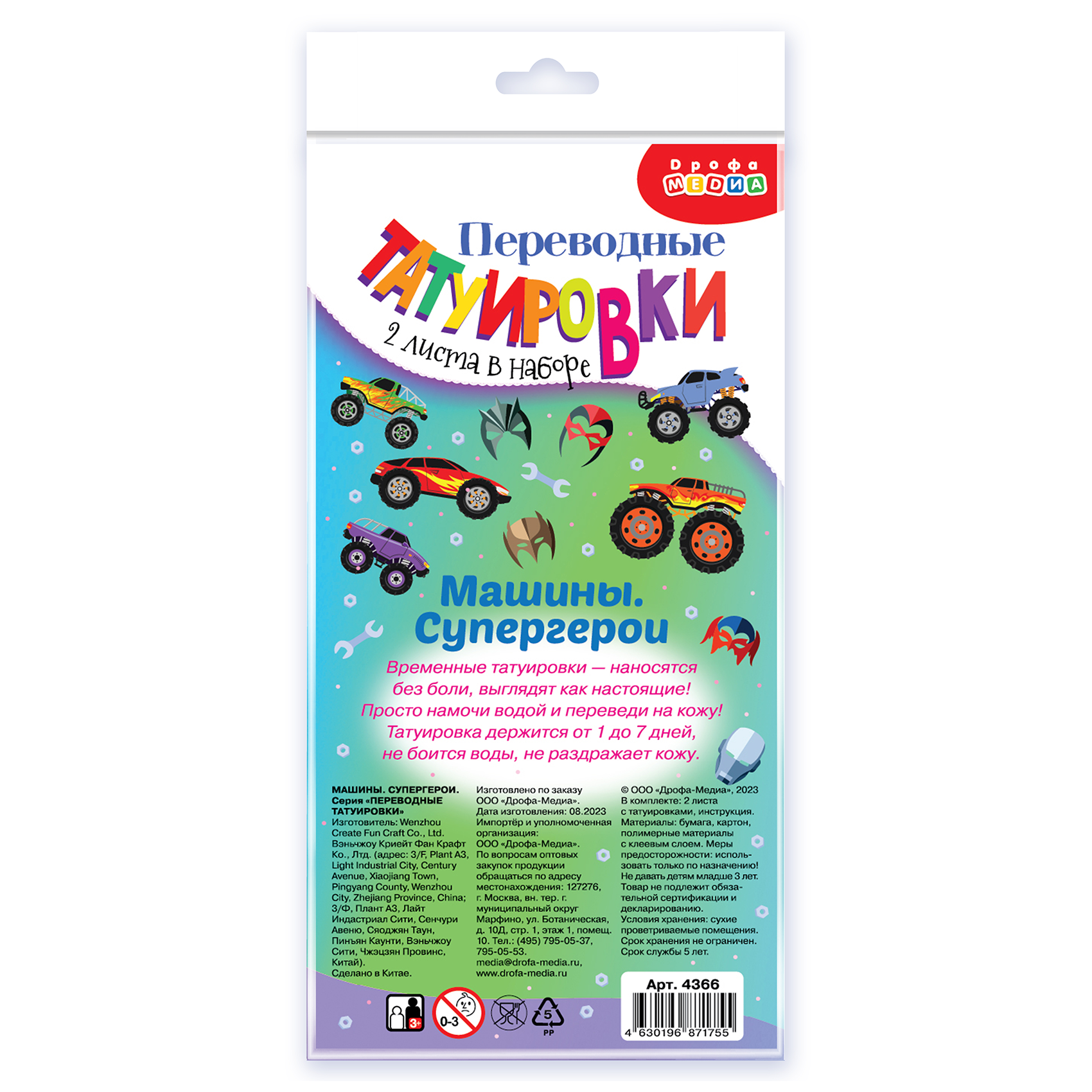 Купить Переводные татуировки Дрофа-Медиа. Машины. Супергерои, 2 листа
