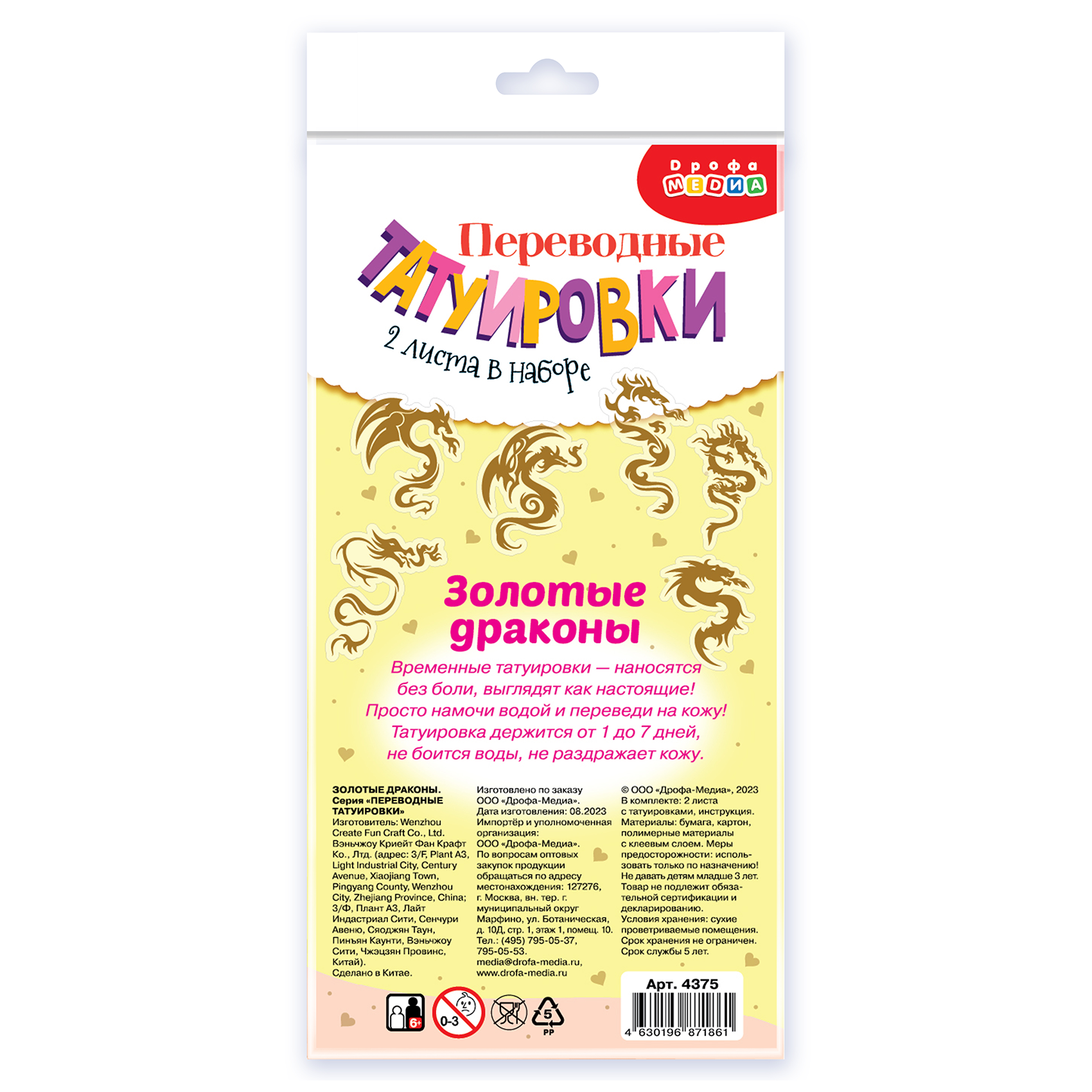 СохранитьПереводные татуировки Дрофа-медиа "Золотые драконы", для детей и взрослых интересное: