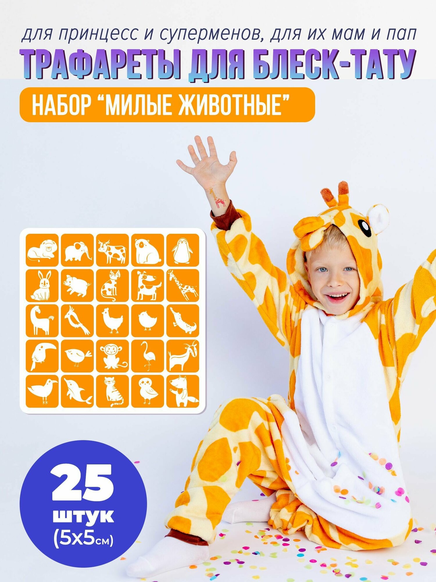 Трафареты для блеск тату , набор Милые Животные интересное:
